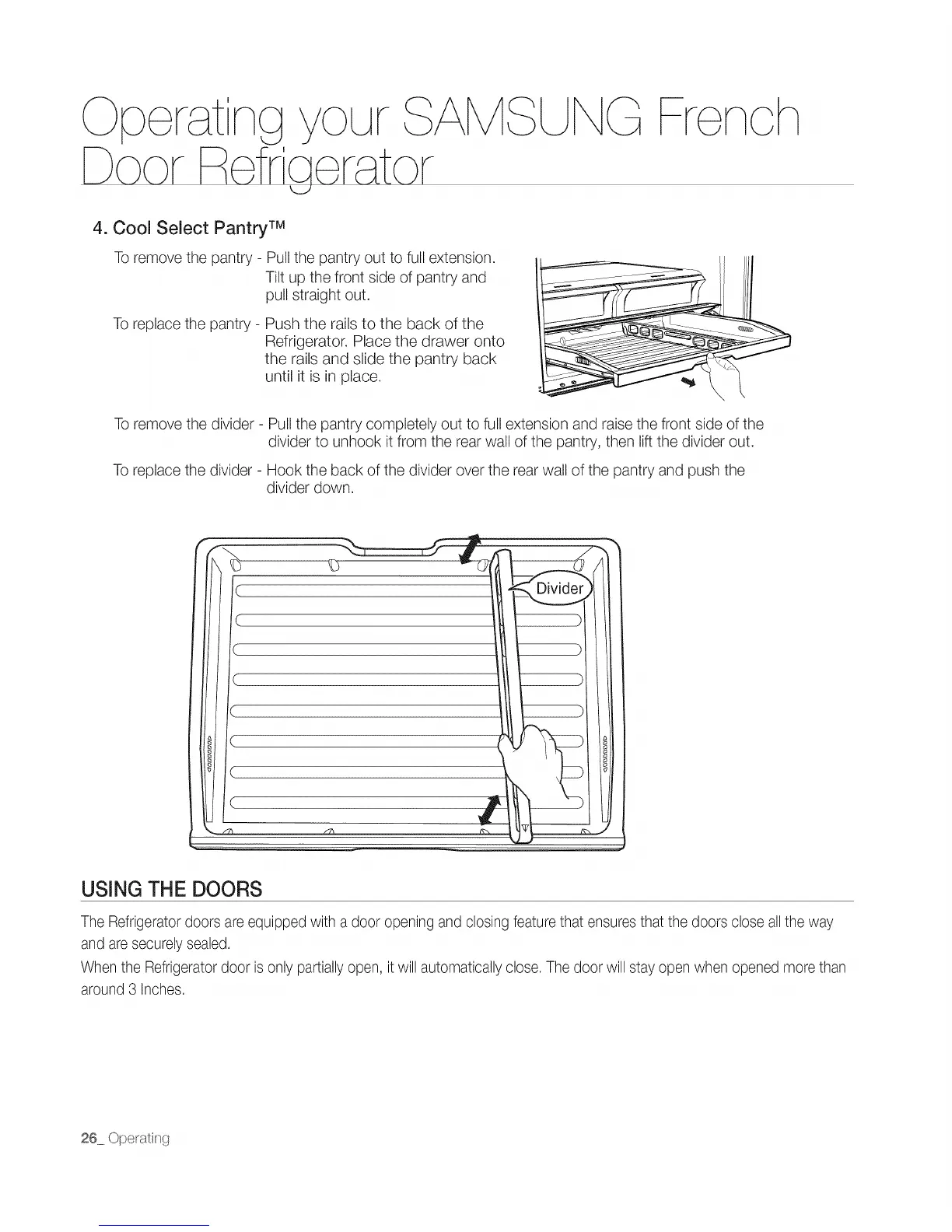 The Refrigerator doors are equipped with a door opening and closing feature that ensures that the doors close all the way