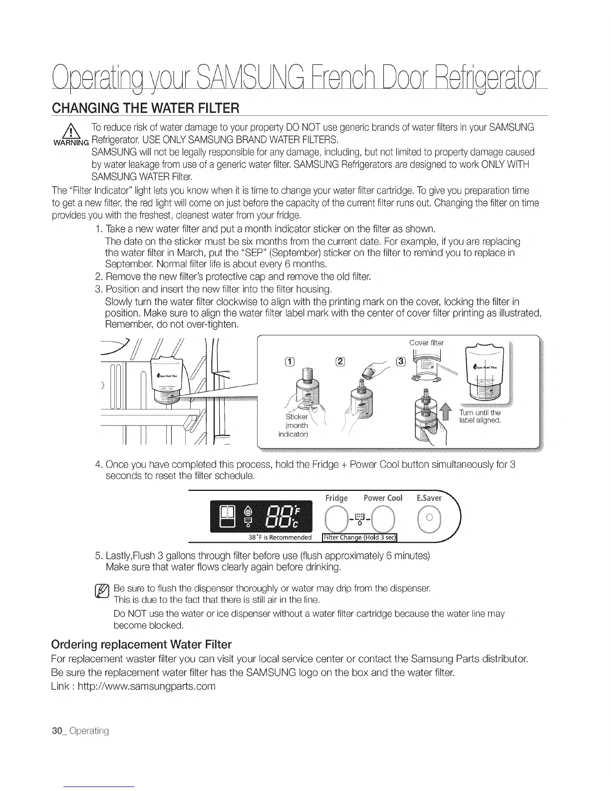 z_ To reduce risk of water damage to your property DO NOT use generic brands of water filters in your SAMSUNG
