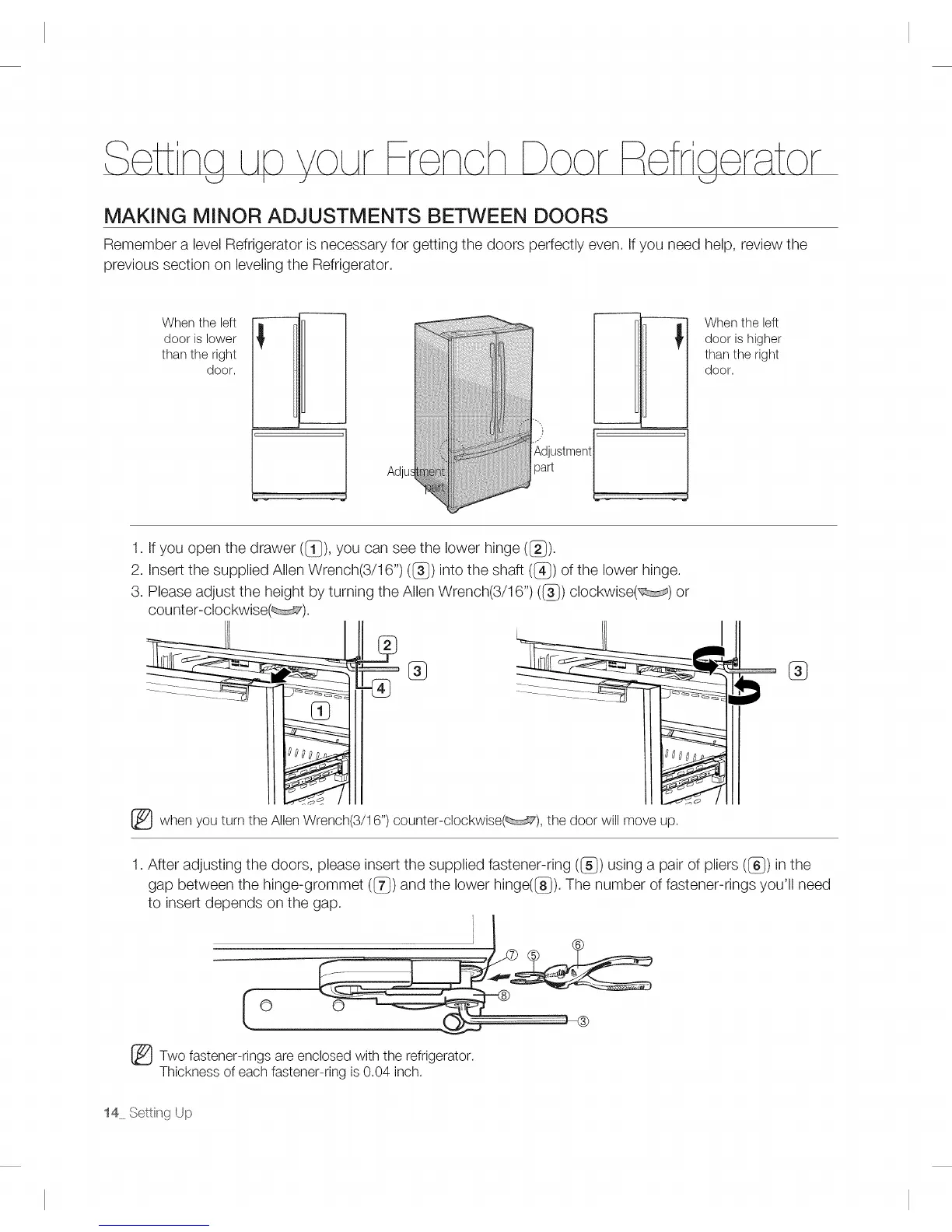 Remember a level Refrigerator is necessary for getting the doors perfectly even. If you need help, review the