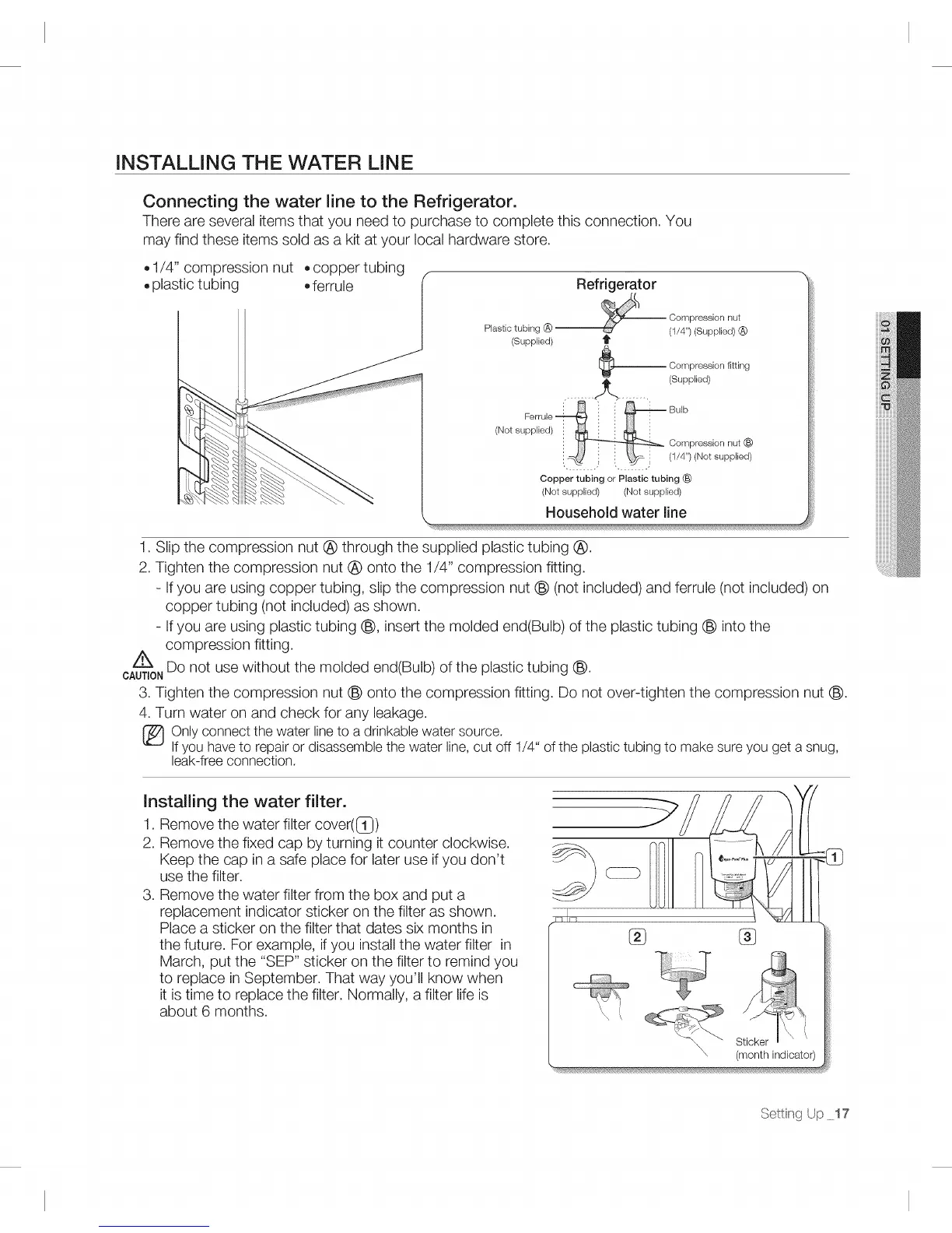 - If you are using copper tubing, slip the compression nut _ (not included) and ferrule (not included) on