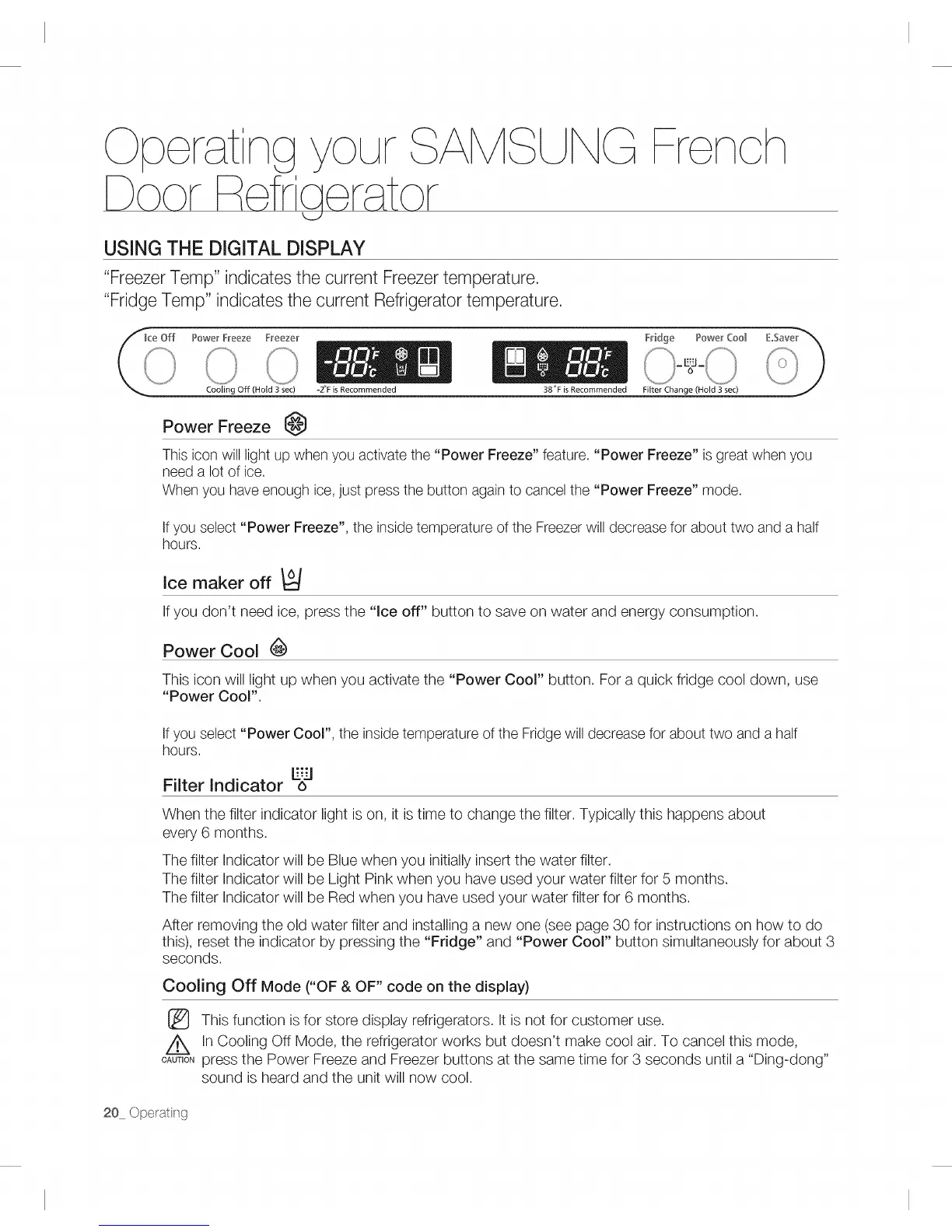 In Cooling Off Mode, the refrigerator works but doesn't make cool air. To cancel this mode,
