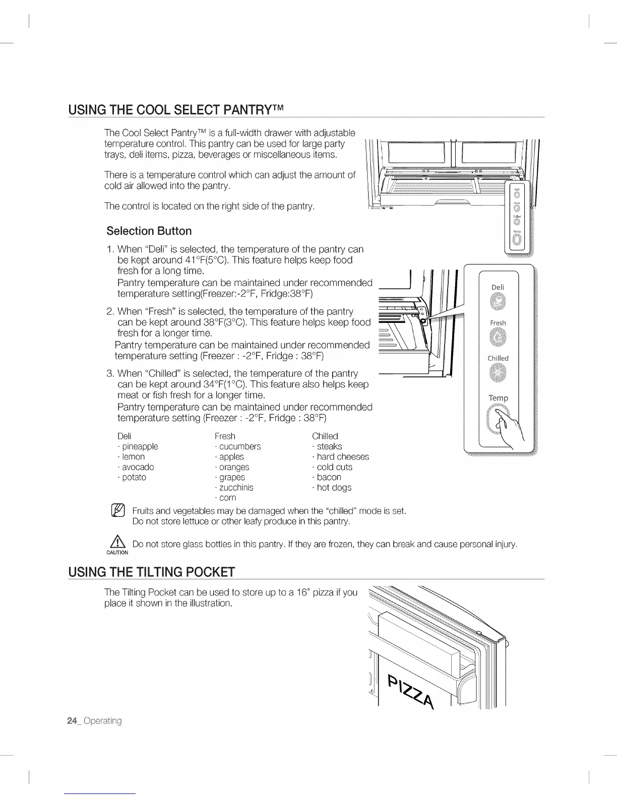 Fruits and vegetables may be damaged when the "chilled" mode is set.