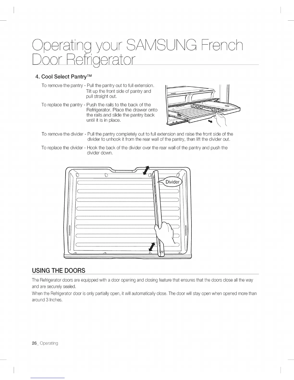 The Refrigerator doors are equipped with a door opening and closing feature that ensures that the doors close all the way