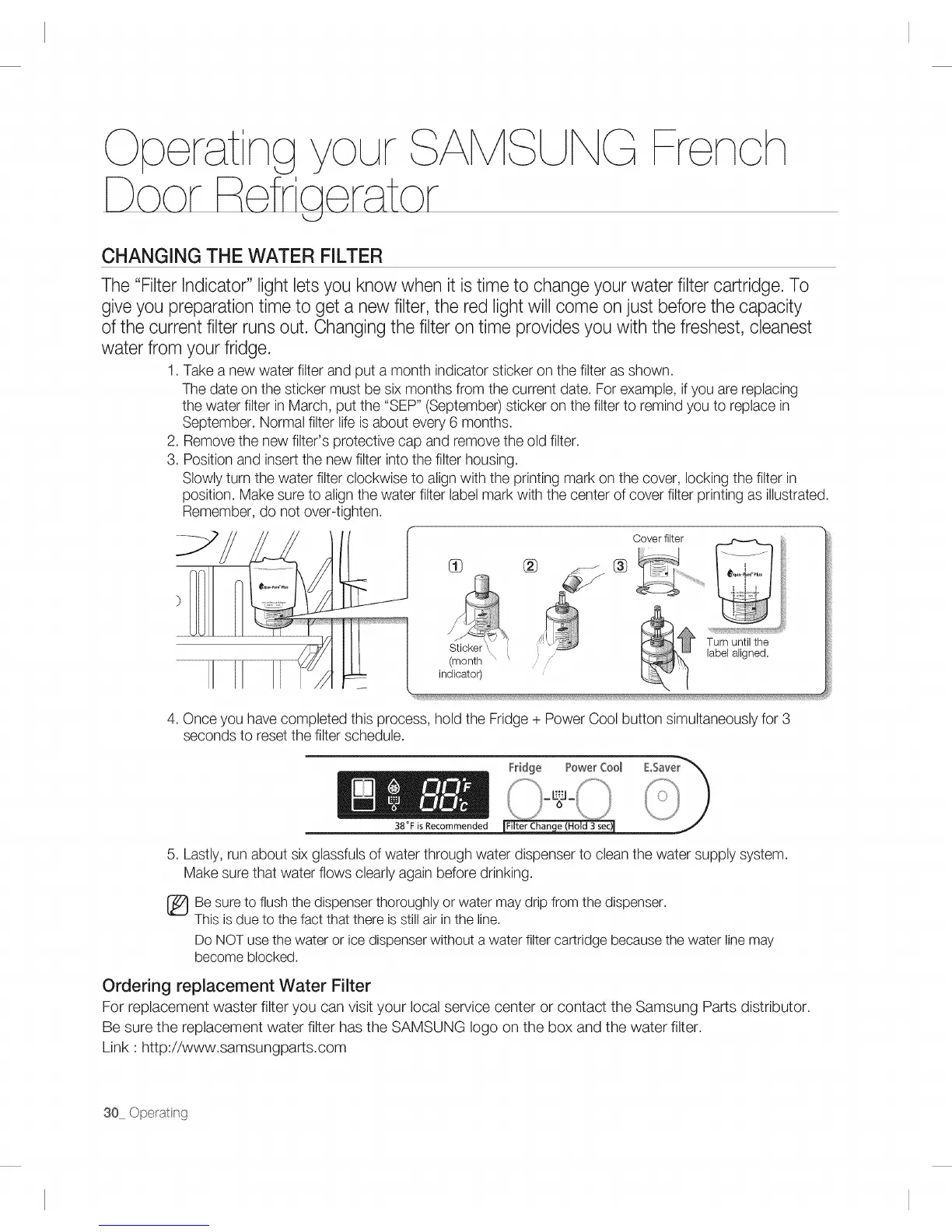 the water filter in March, put the "SEP" (September) sticker on the filter to remind you to replace in