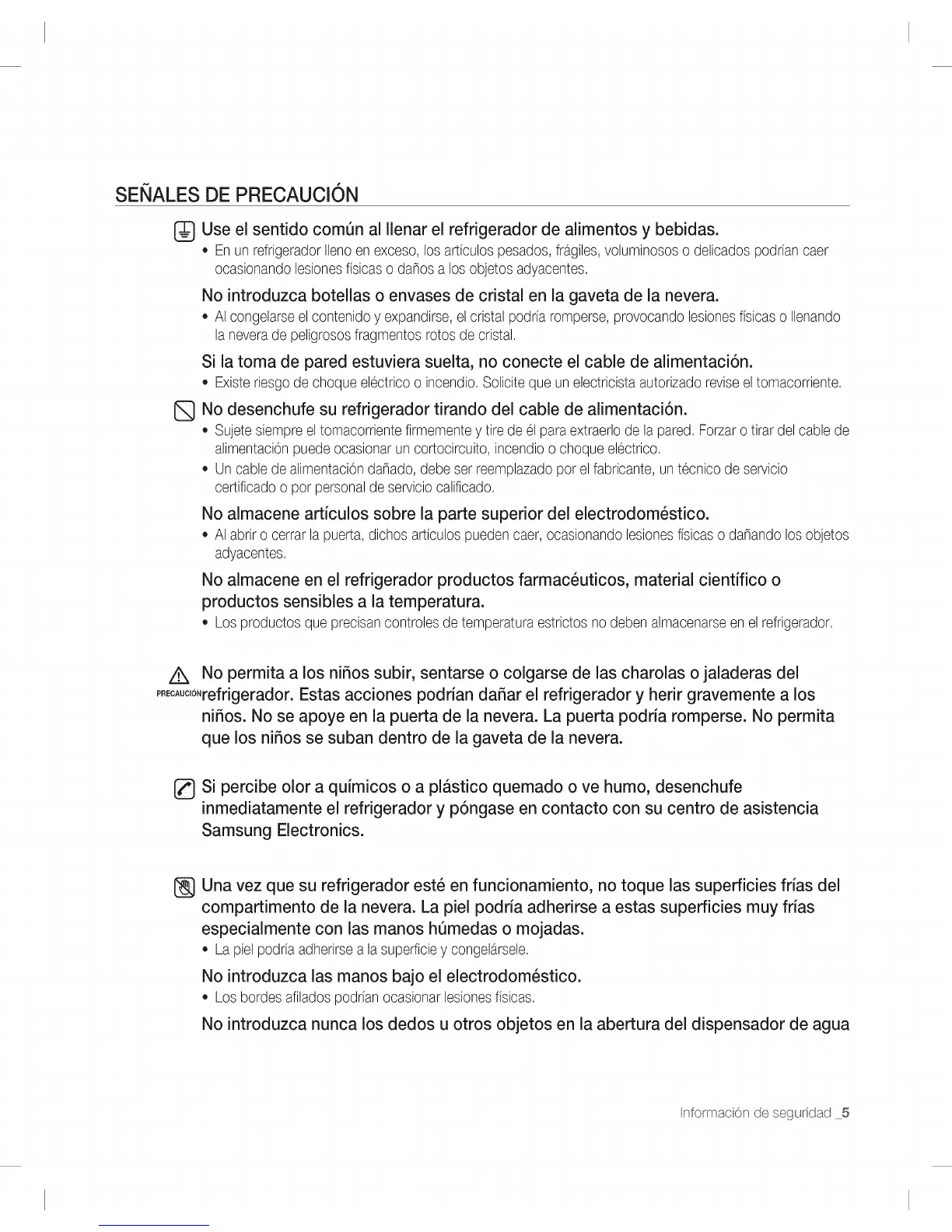 p,EcAuc,o,refrigerador. Estas acciones podrian daSar el refrigerador y herir gravemente a los