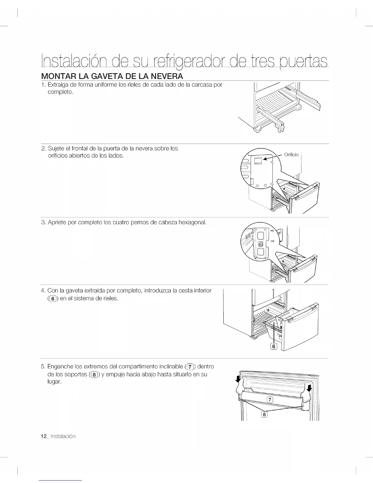 4. Con la gaveta extraida por completo, introduzca la cesta inferior