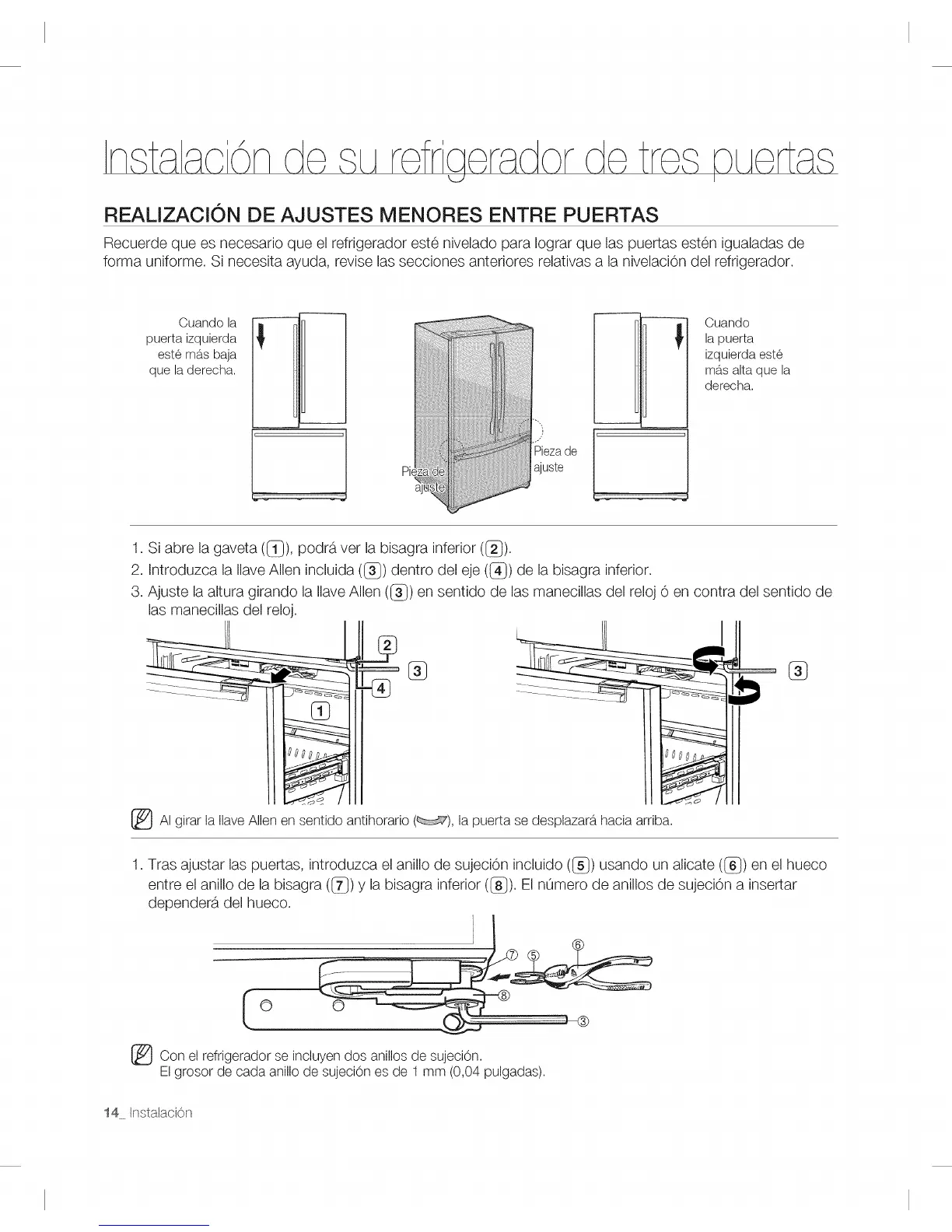 1. Tras ajustar las puertas, introduzca el anillo de sujeci6n incluido ({_) usando un alicate (_}) en el hueco
