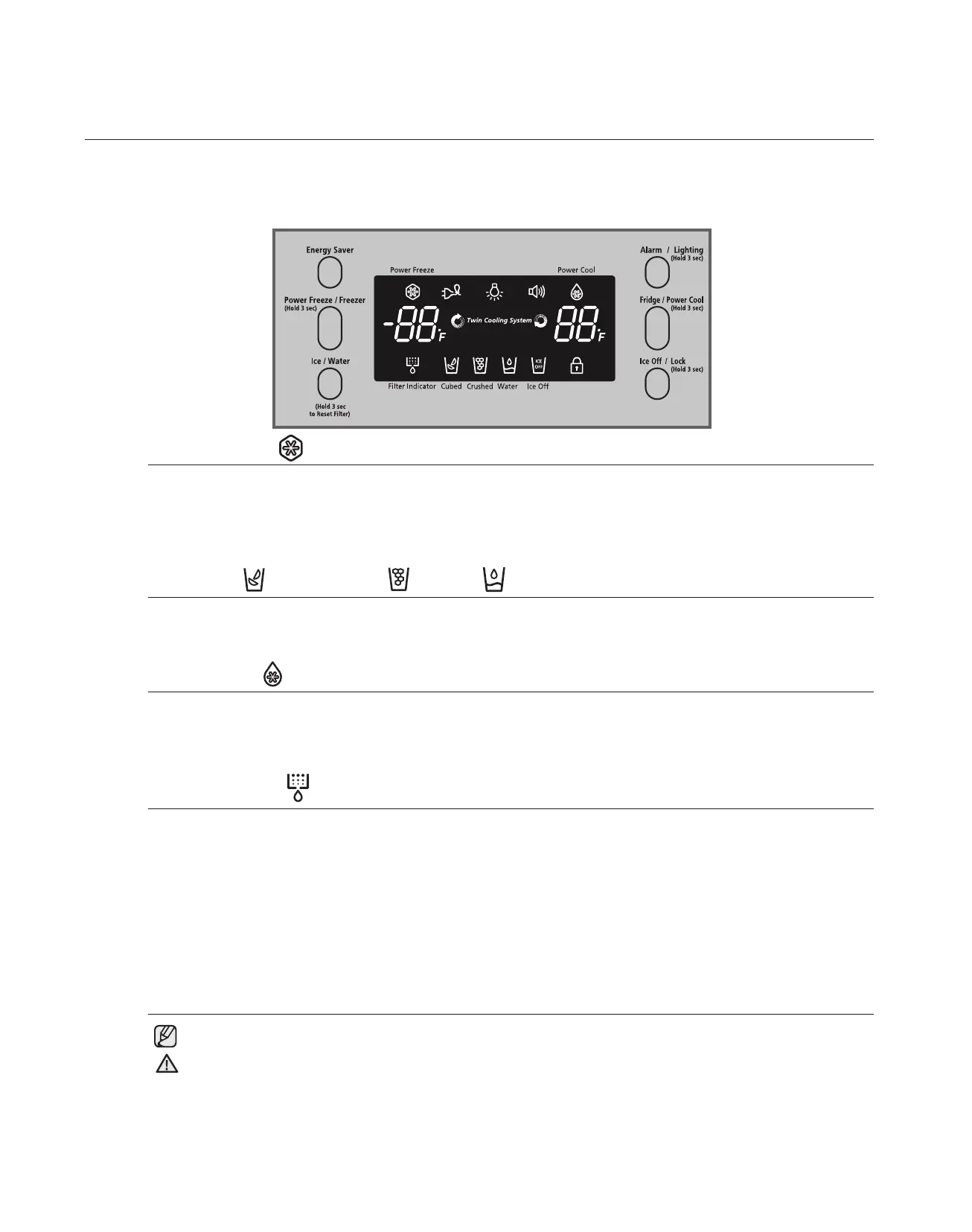 need ice, turn the feature off to save on water and energy consumption. The Ice type light indicates the