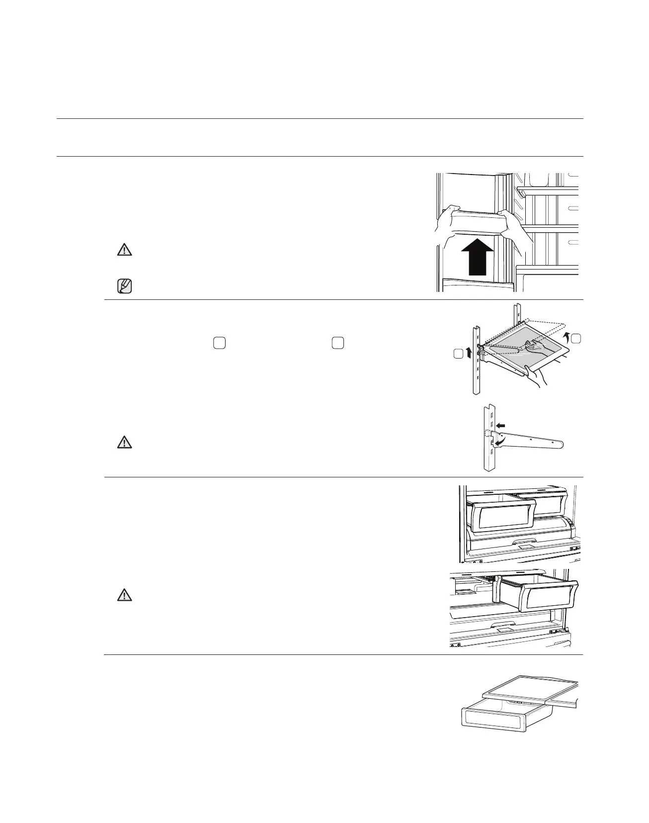 To remove - Tilt up the front of the shelf in the direction