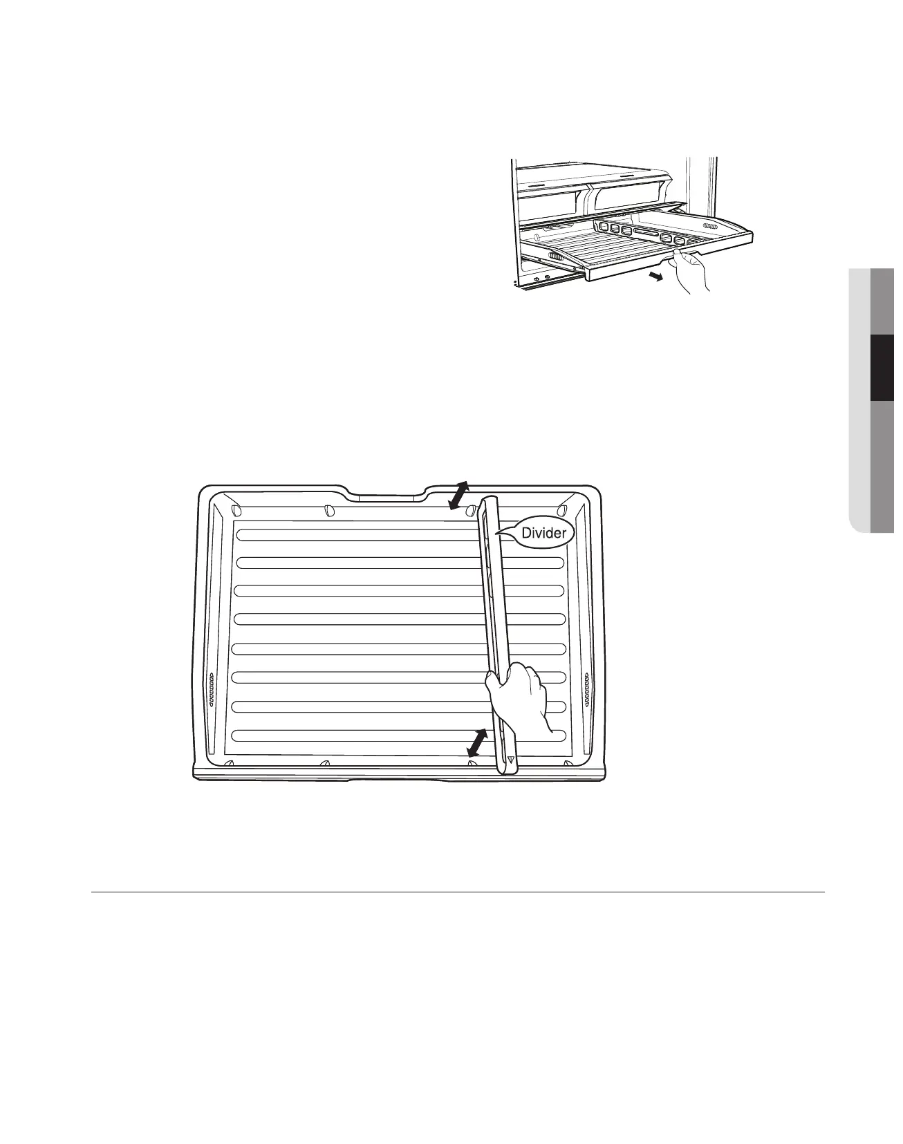 To relocate the divider - Hook the back of the divider over the rear wall of the pantry and push the