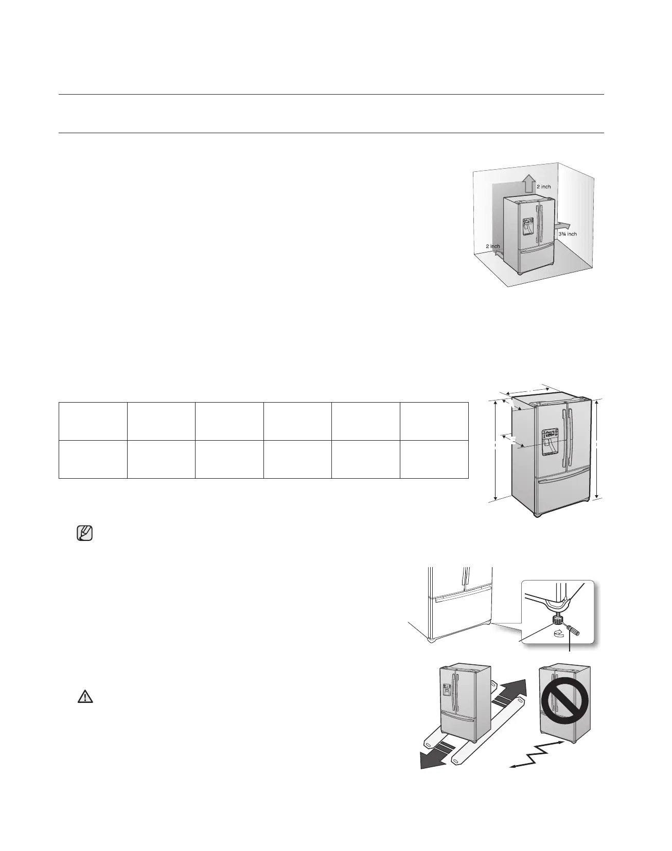 the refrigerator next to a fixed wall, minimum clearance is 3 ¾” (95mm) between the refrigerator and wall to allow