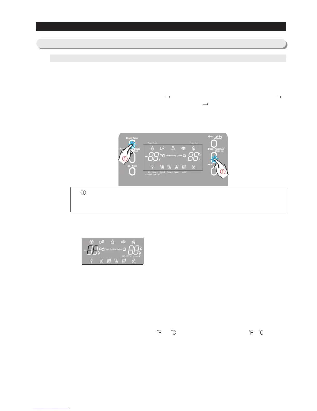 ● If Energy Saver Key + Fridge/Power Cool Key on the front of panel are pressed simultaneously