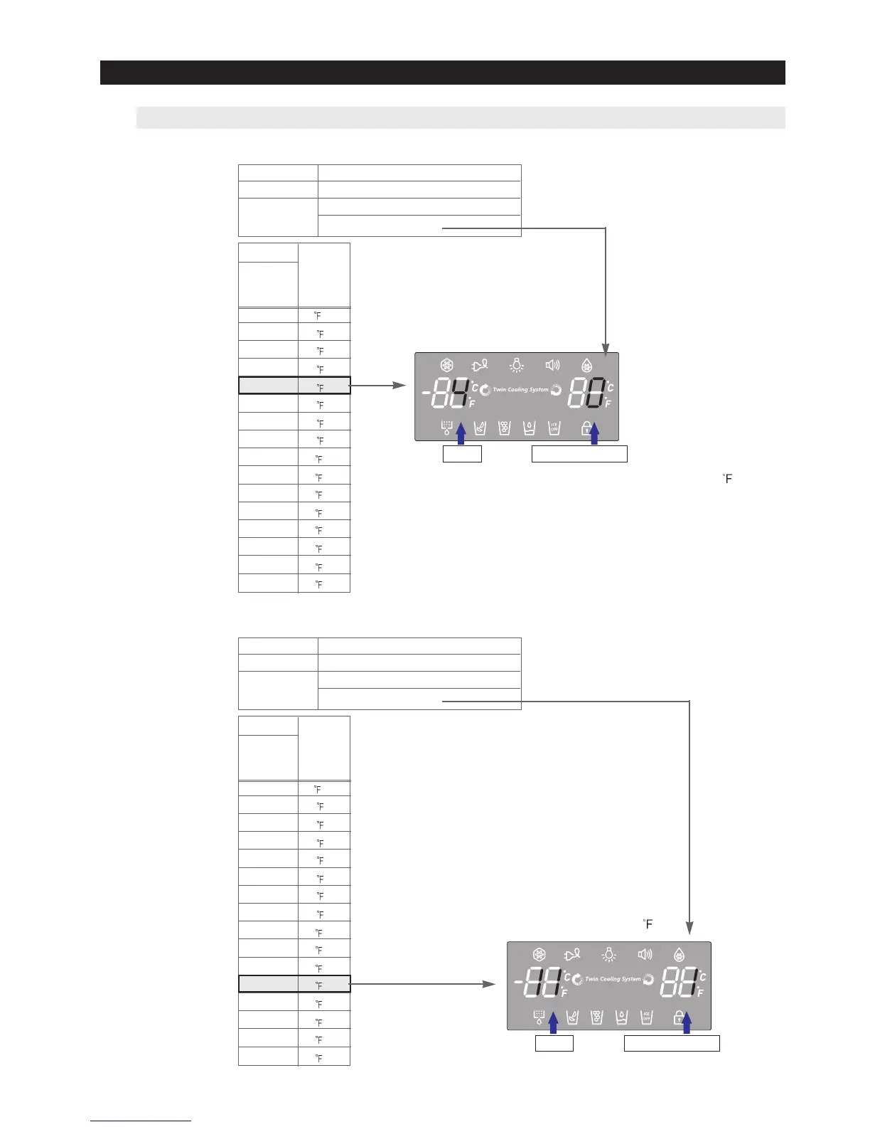 ex) If you want to change the freezer standard temperature to 28.4 (-2°C)