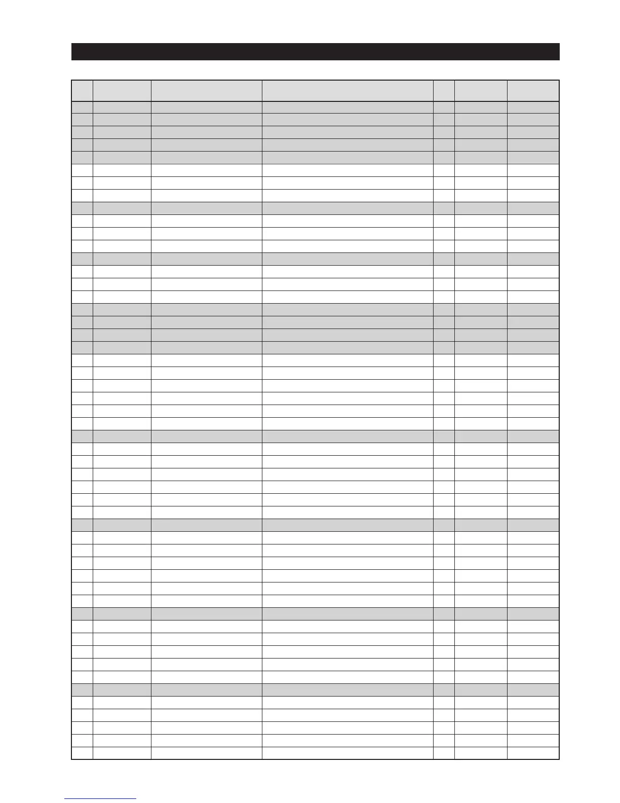 Parts List of Cabinet