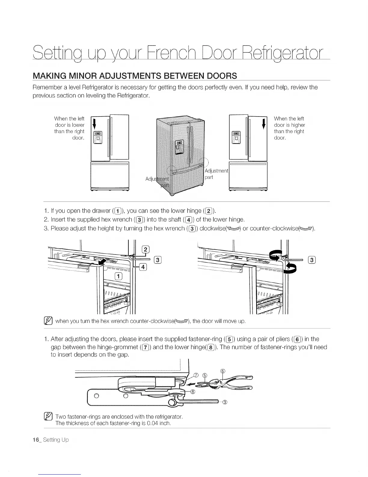 Remember a level Refrigerator is necessary for getting the doors perfectly even. If you need help, review the