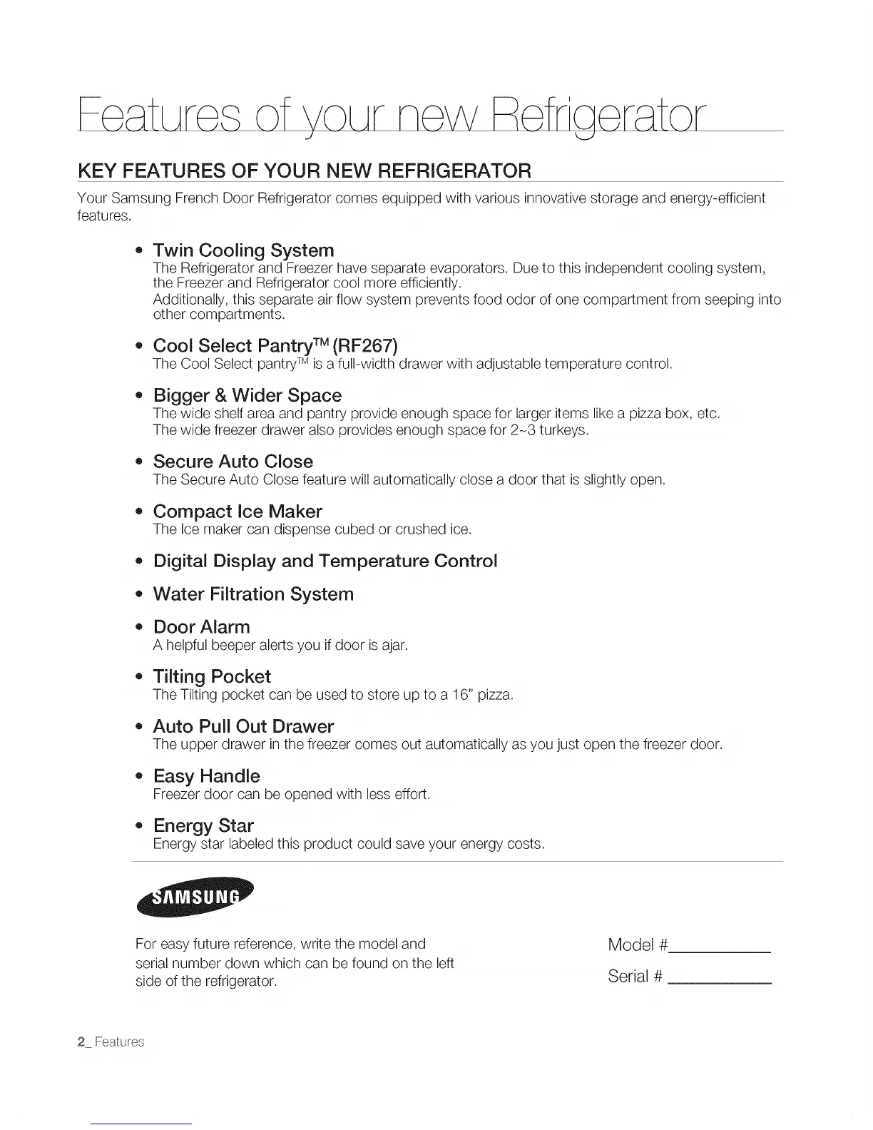 Your Samsung French Door Refrigerator comes equipped with various innovative storage and energy-efficient