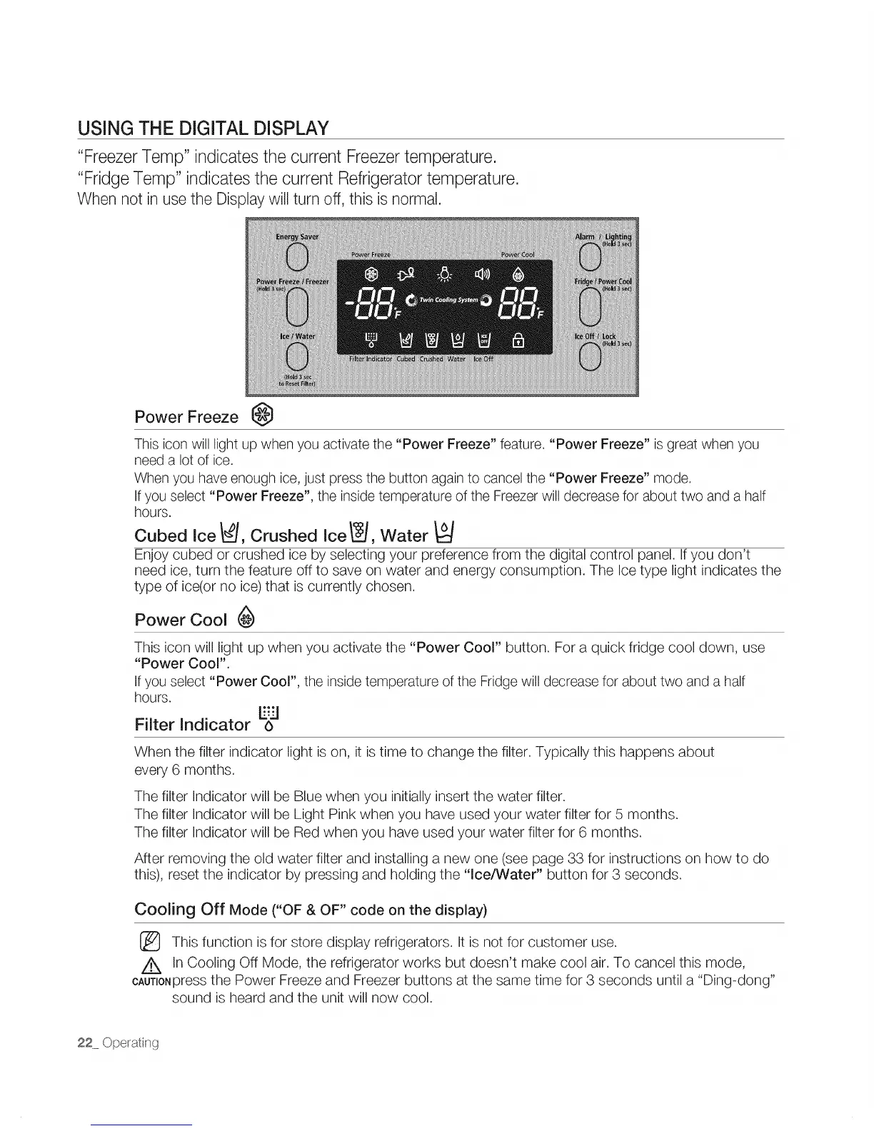 In Cooling Off Mode, the refrigerator works but doesn't make cool air. To cancel this mode,