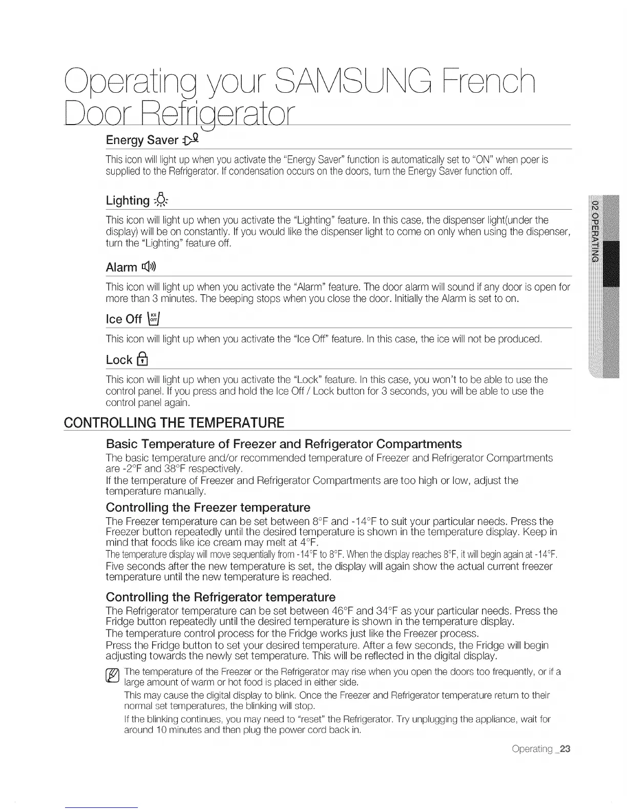 supplied to the Refrigerator. If condensation occurs on the doors, turn the Energy Saver function off.