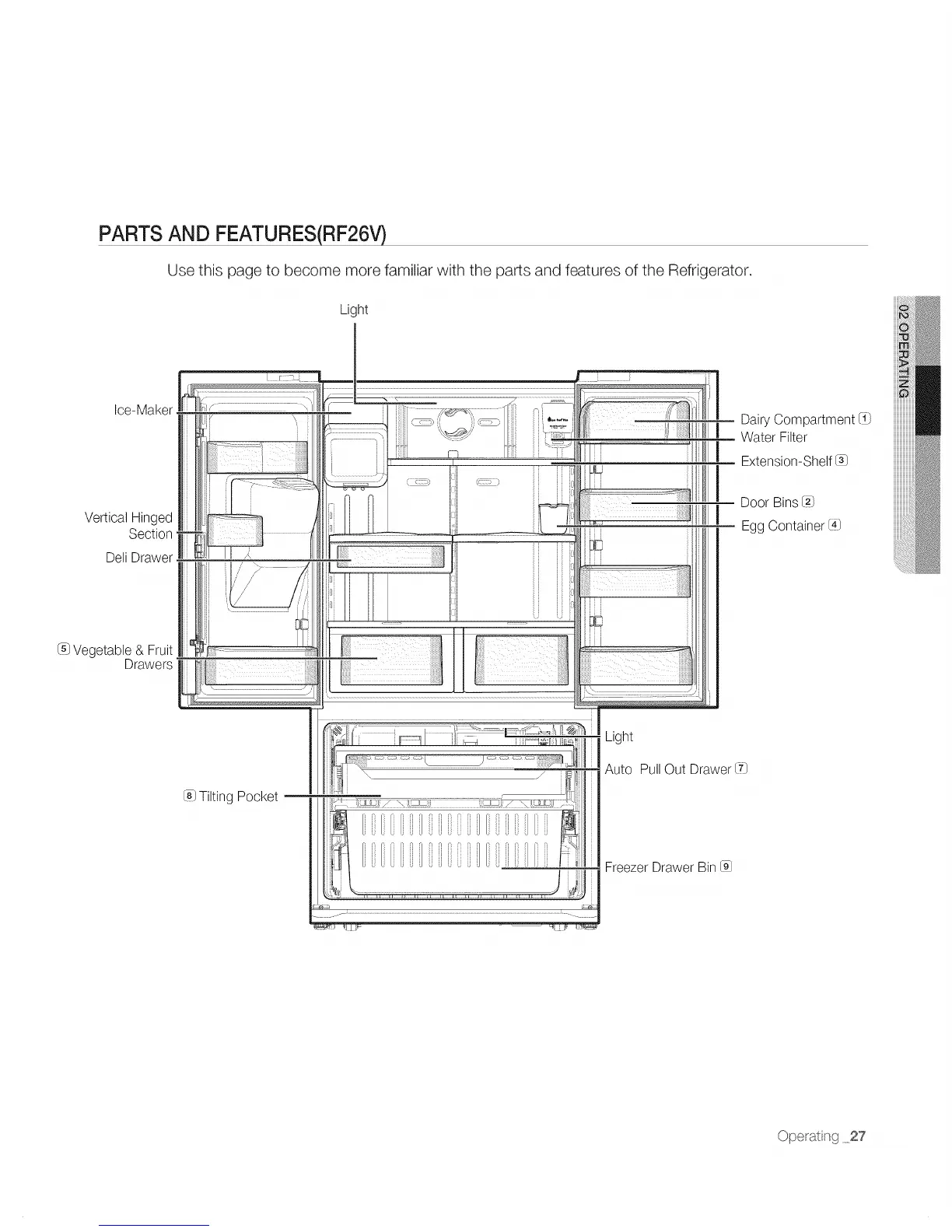 Use this page to become more familiar with the parts and features of the Refrigerator.