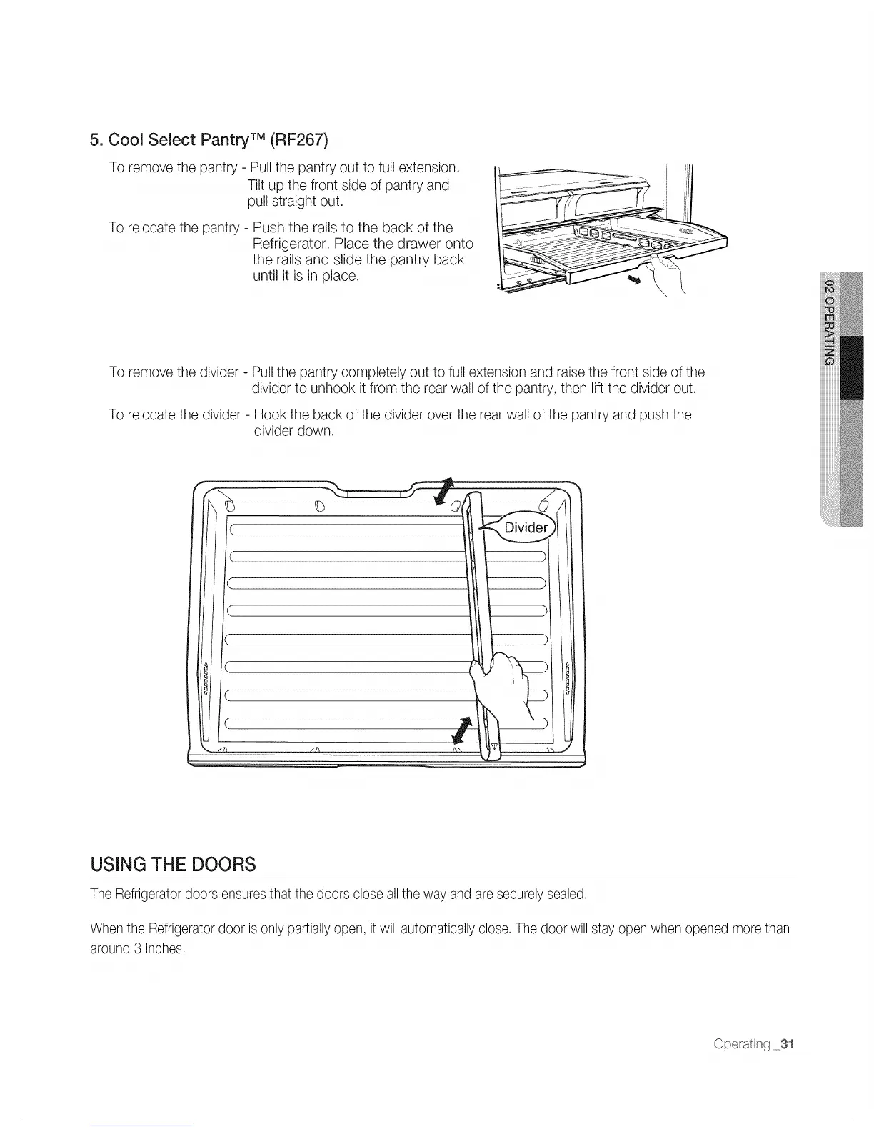 To relocate the divider - Hook the back of the divider over the rear wall of the pantry and push the