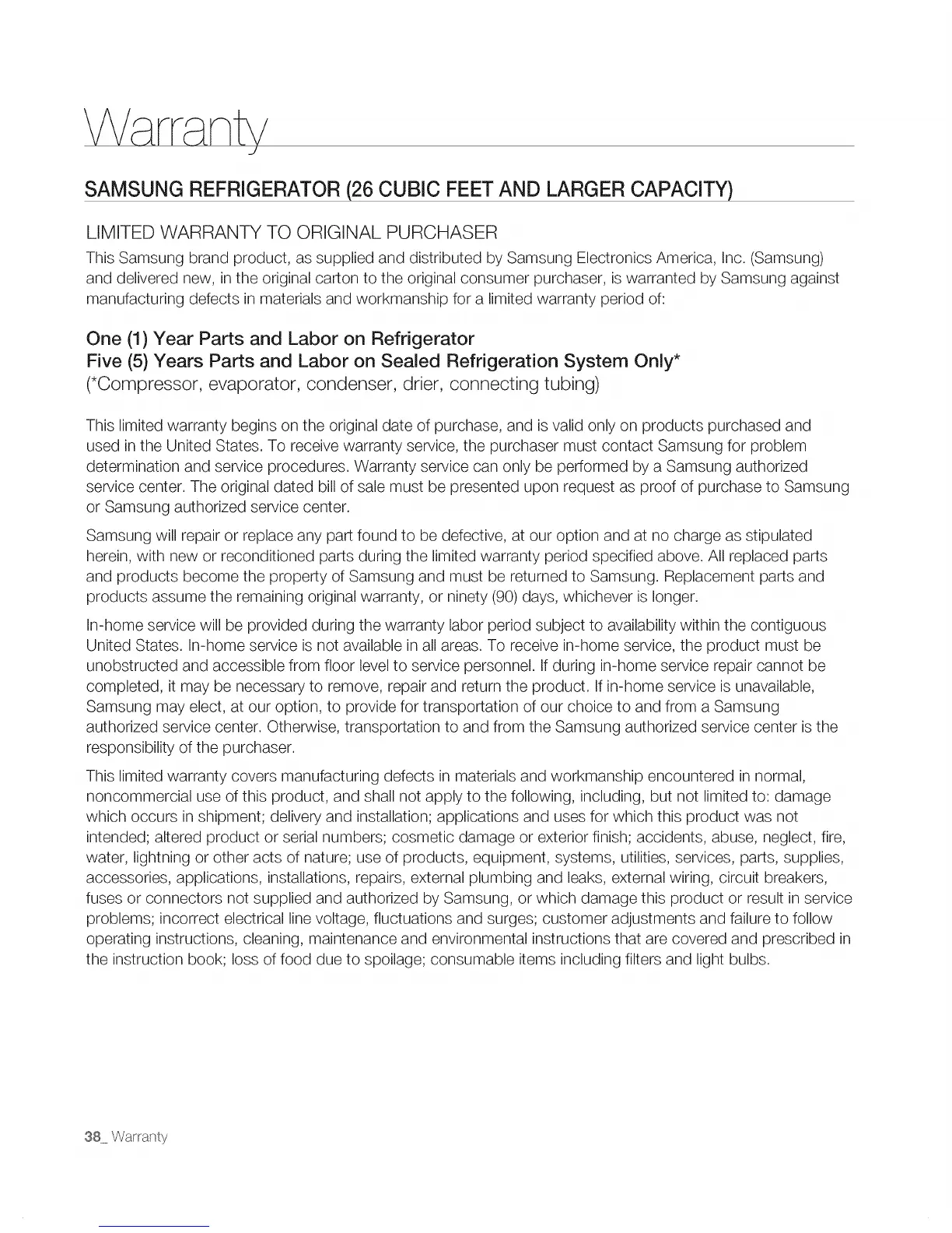 used in the United States. To receive warranty service, the purchaser must contact Samsung for problem