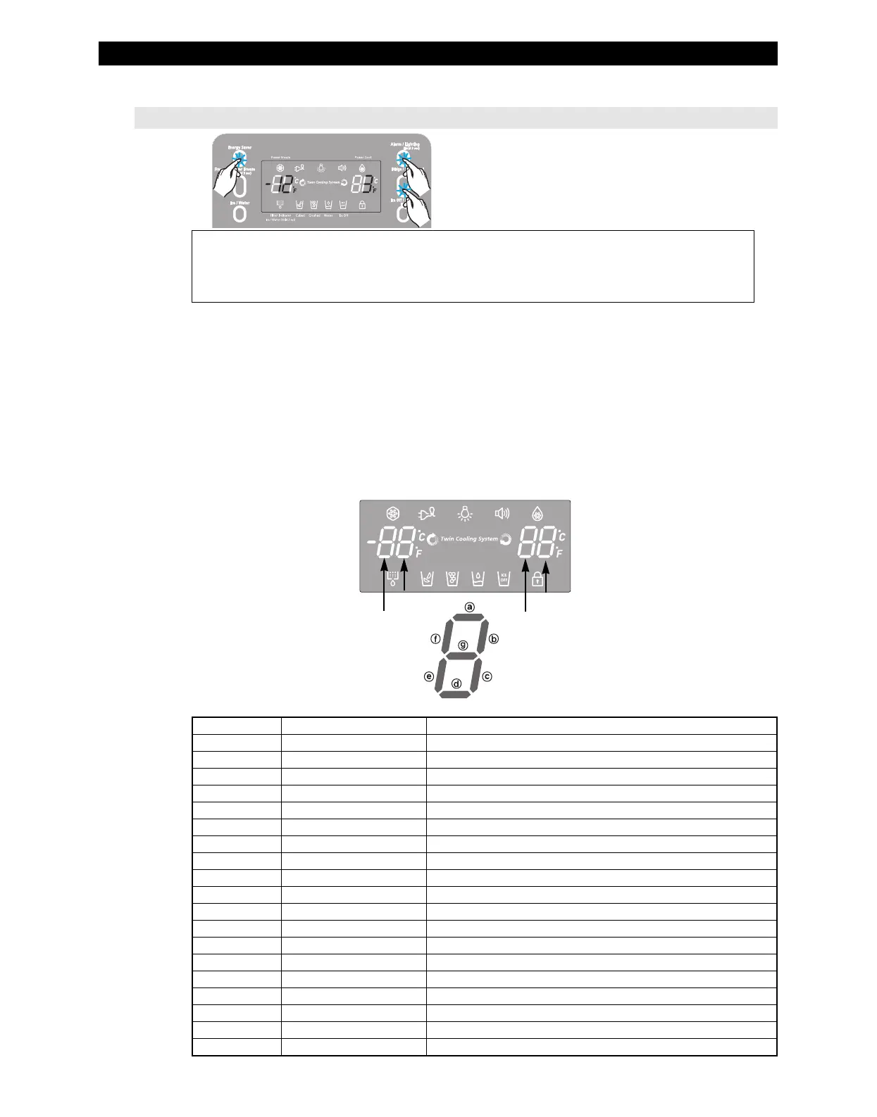 operation, the temperature setting display of fresh food and freezer compartments will blink ALL ON/OFF with