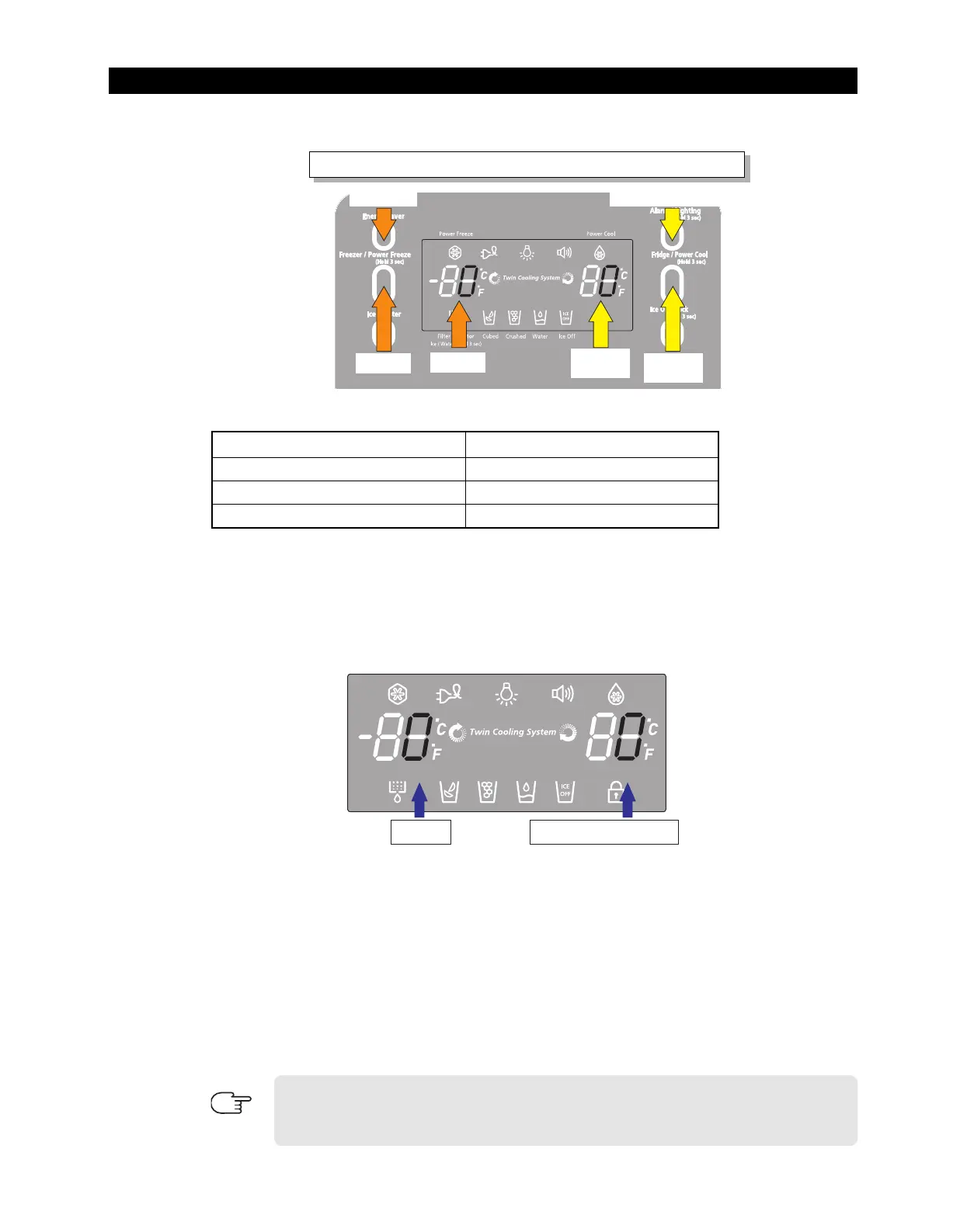 1) For example, if you want to change freezer compartment standard temperature to 28.4℉(-