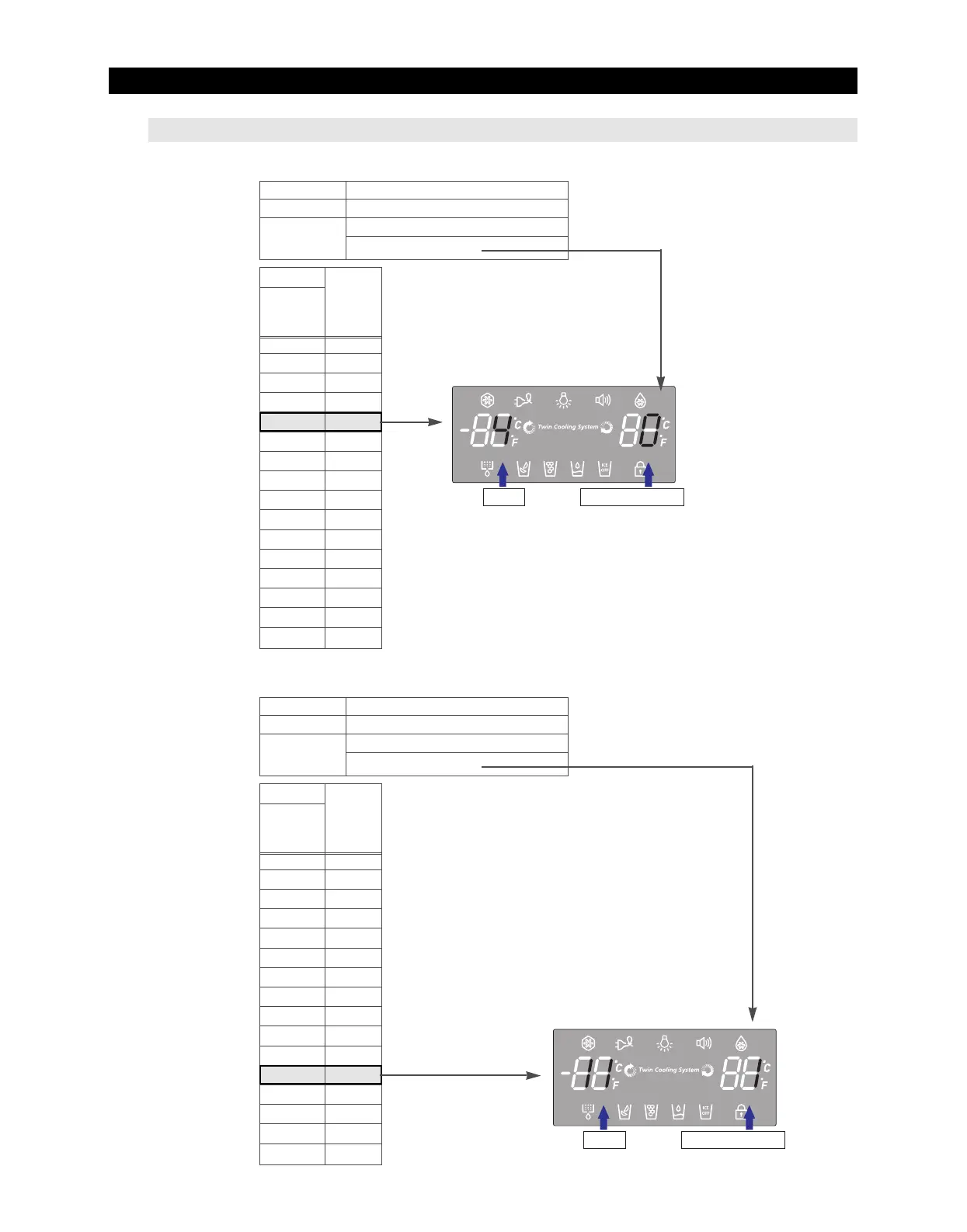 ex) If you want to change the freezer standard temperature to 28.4℉(-2°C)