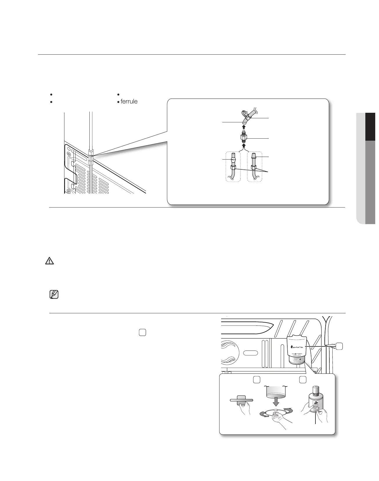 - If you are using copper tubing, slip the compression nut Ⓑ (not included) and ferrule (not included) on