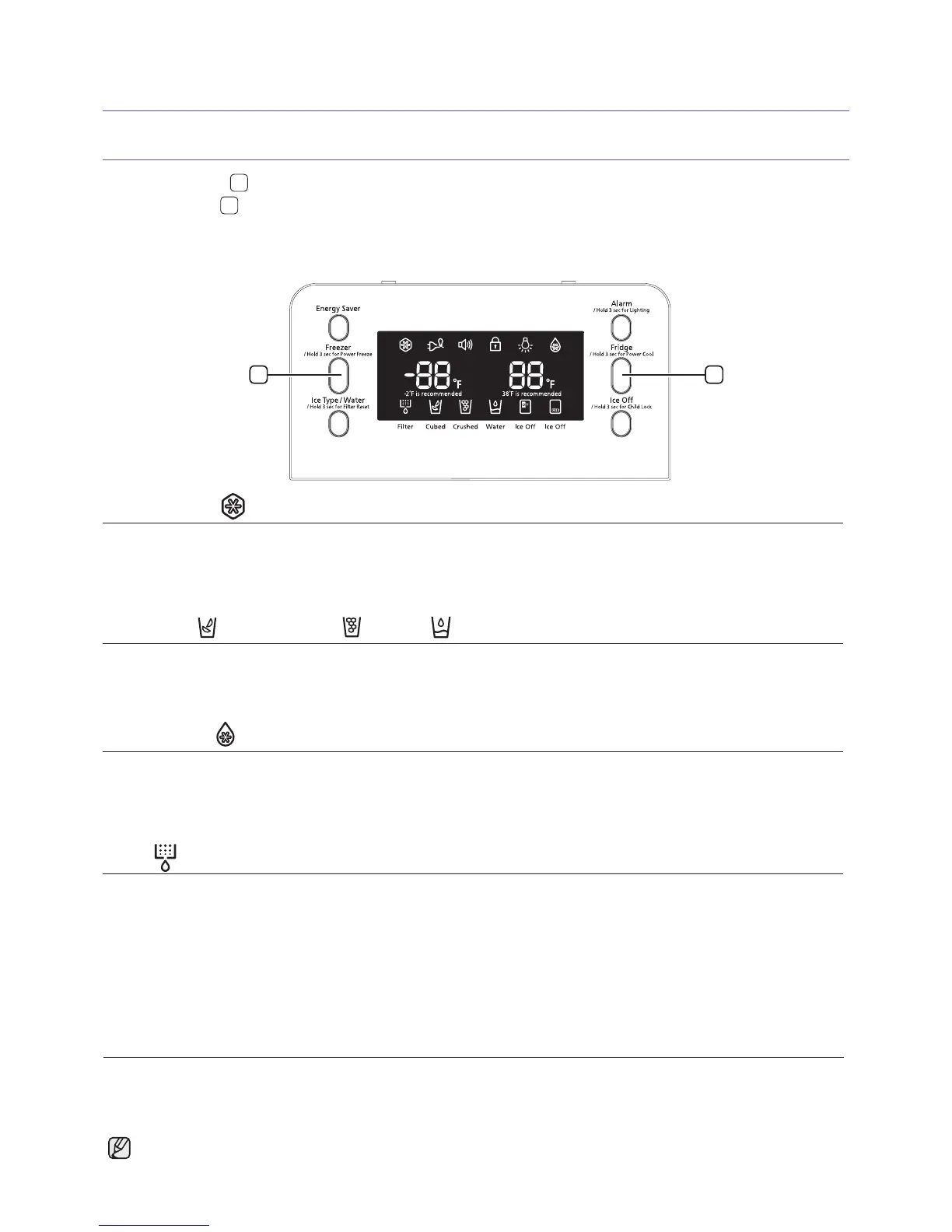 ice, turn the function off to save on water and energy consumption. Each Ice type icon will light up by your