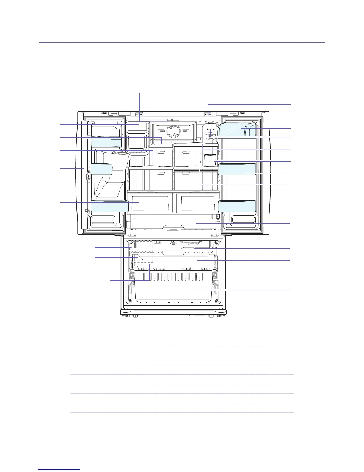 5. Vertical Hinged Section 12. Water Filter 19. Auto Pull Out Drawer