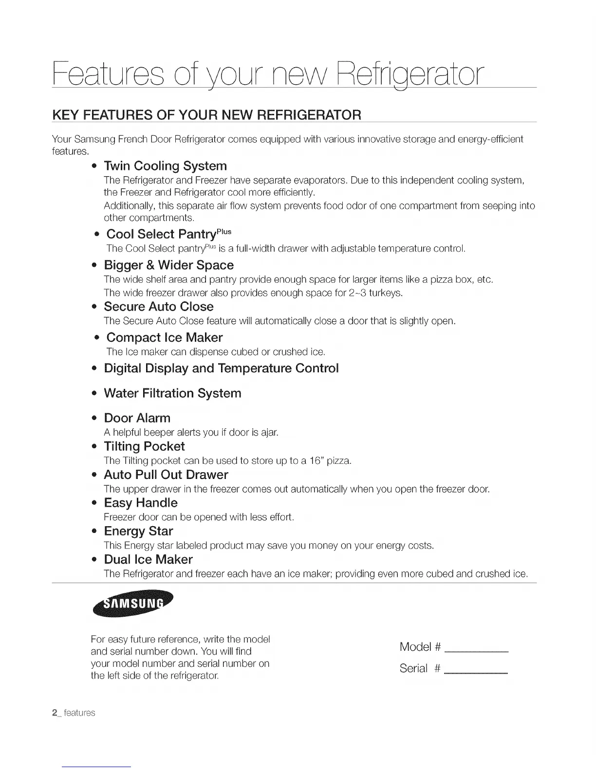 Your Samsung French Door Refrigerator comes equipped with various innovative storage and energy-efficient