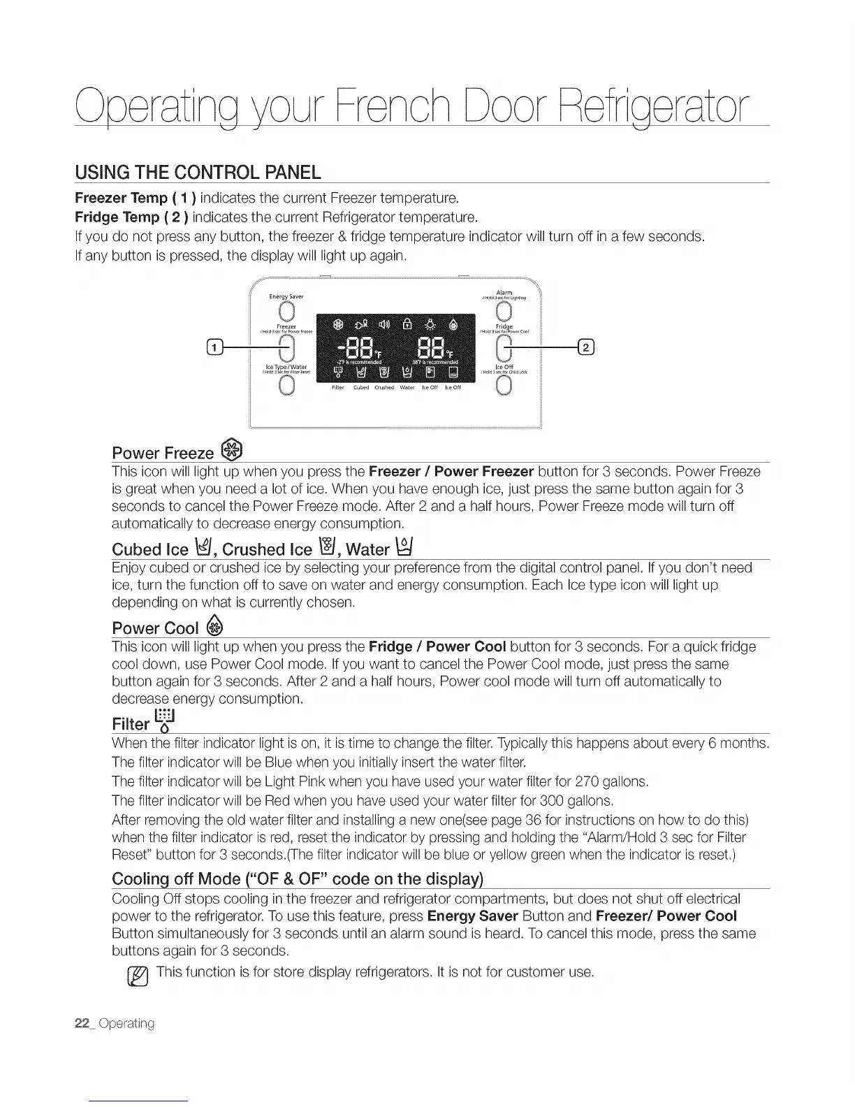 power to the refrigerator. To use this feature, press Energy Saver Button and Freezer/Power Cool