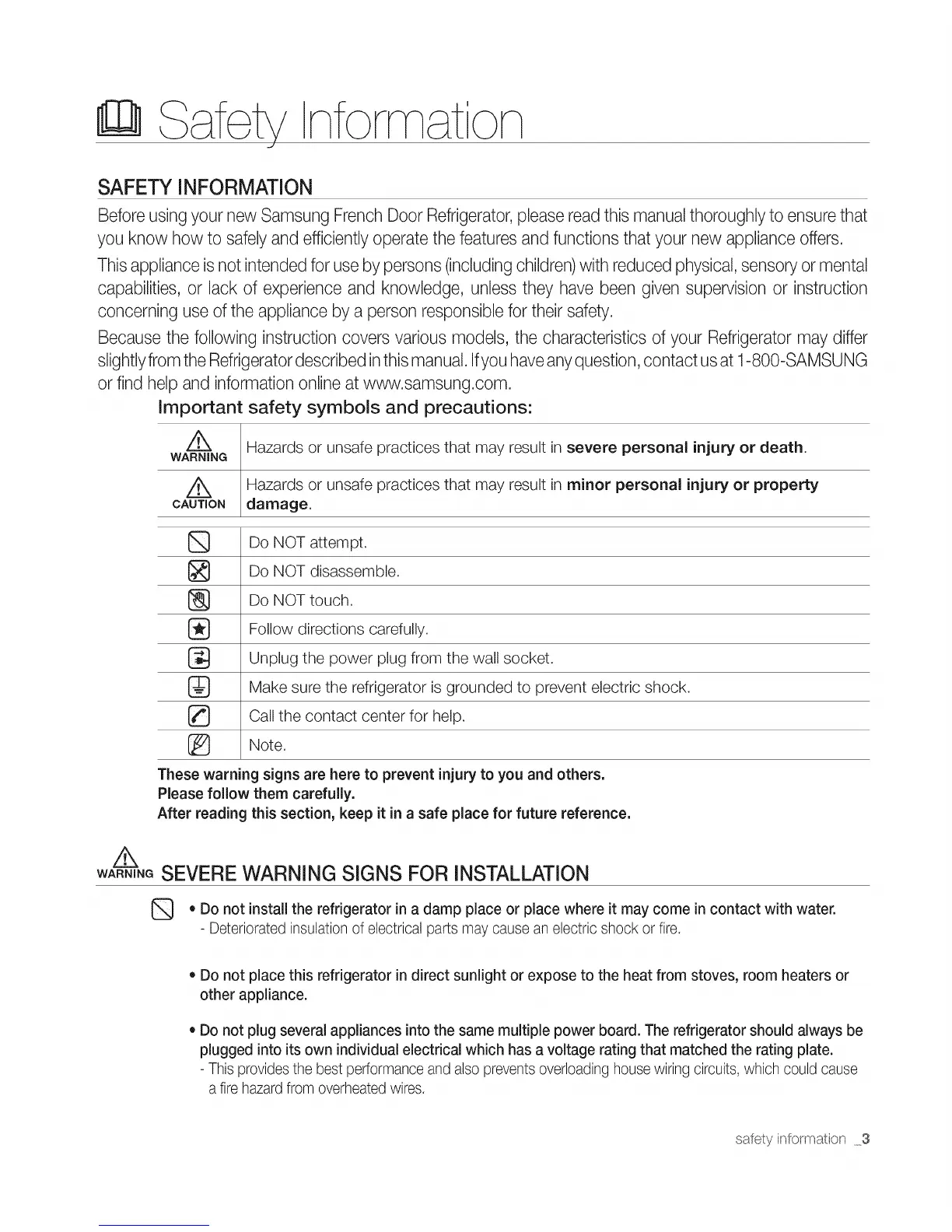 slightlyfrom the Refrigeratordescribed inthis manual,Ifyou haveanyquestion, contact usat 1-800-SAMSU NG