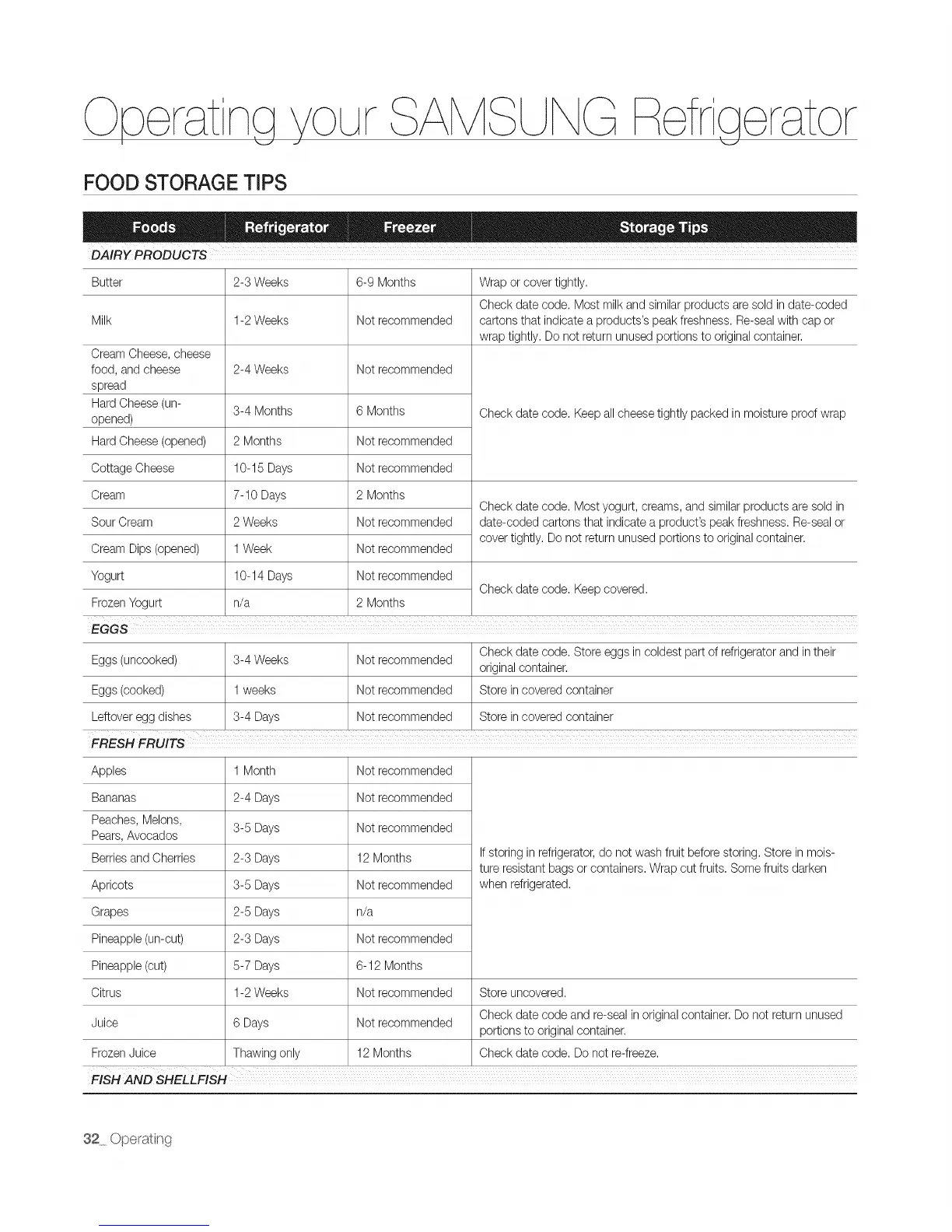 Leftoveregg dishes 3-4 Days Not recommended Store in covered container
