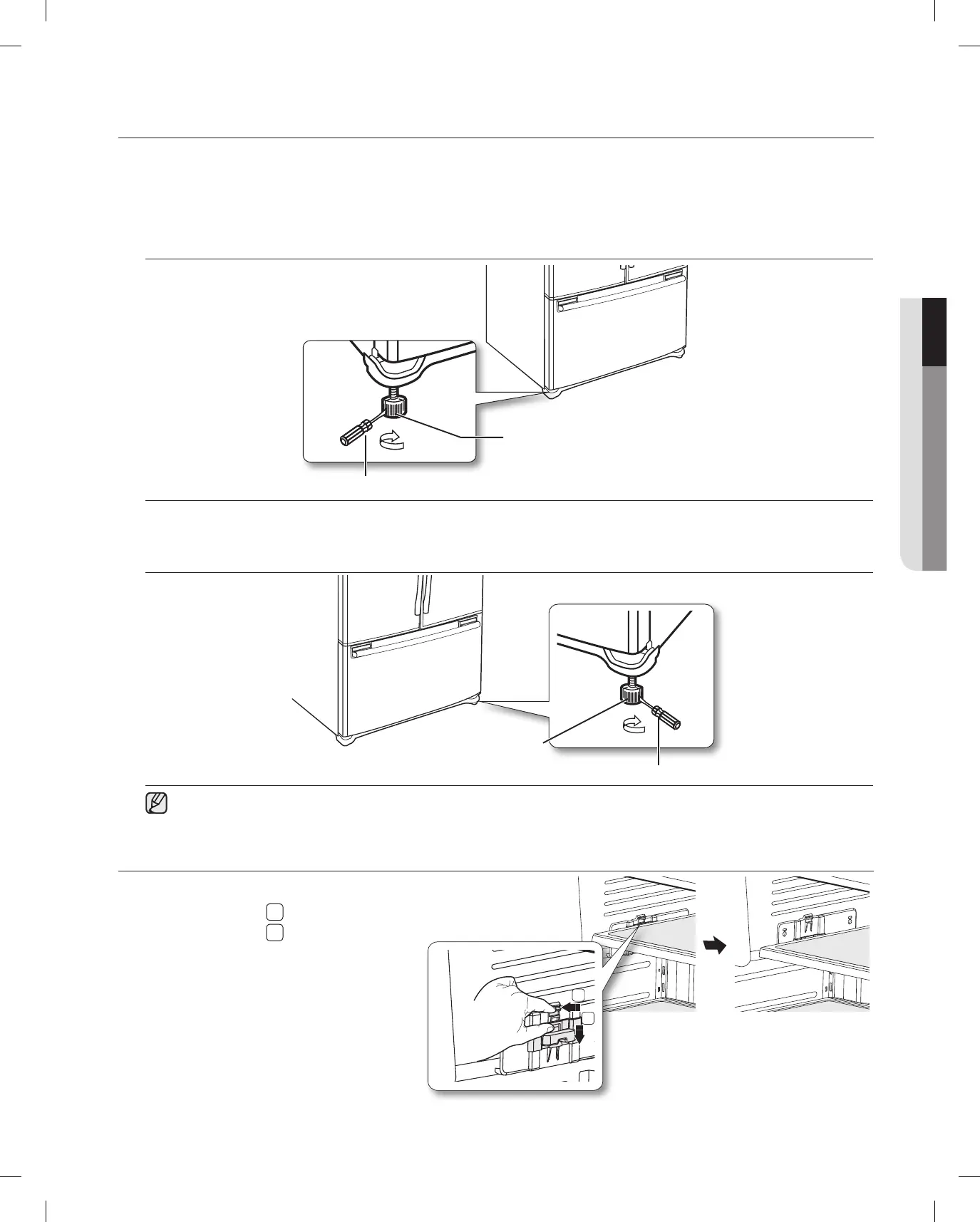 make final adjustments. If the Refrigerator is not level, it will not be possible to get the doors perfectly even.