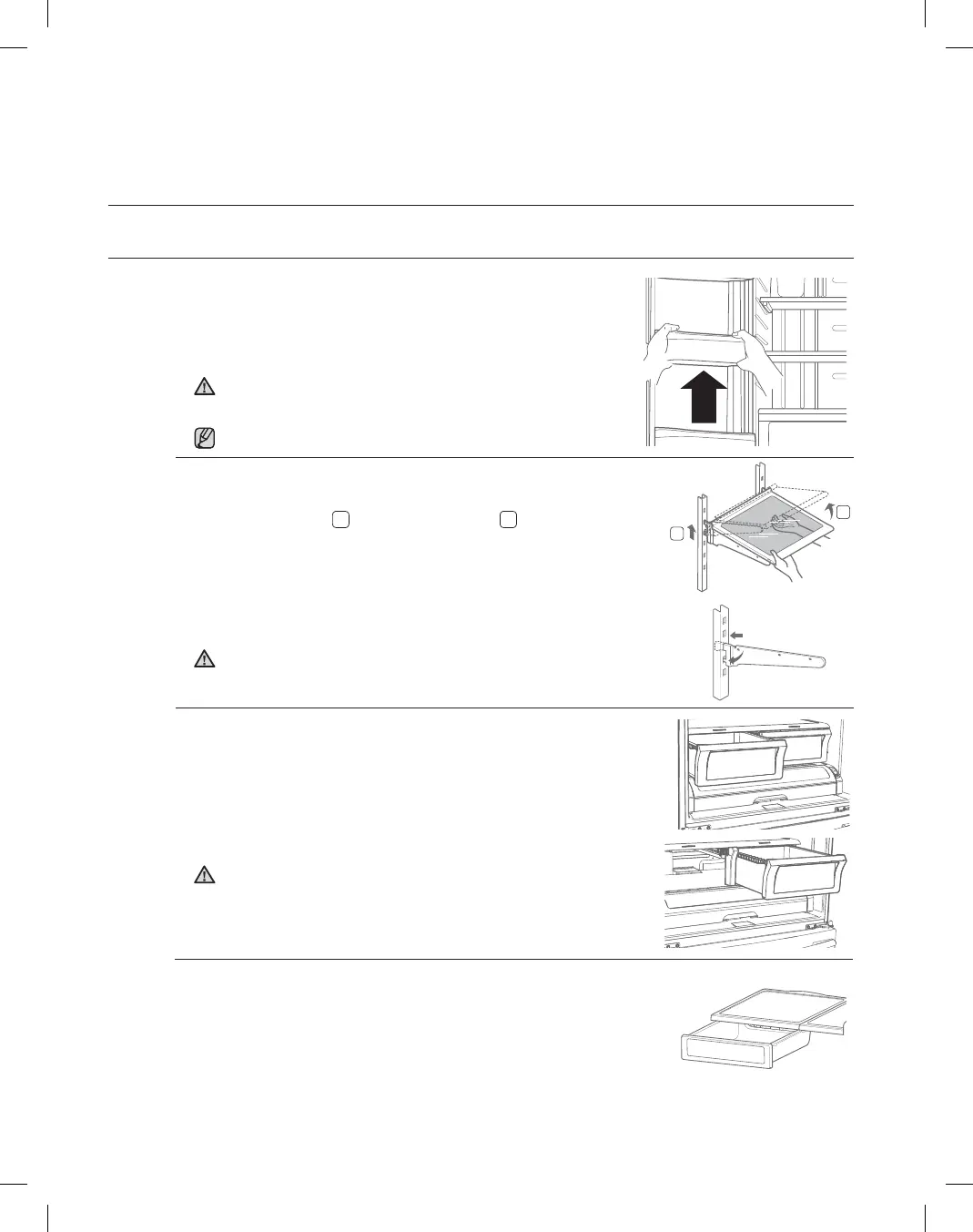 To remove - Tilt up the front of the shelf in the direction