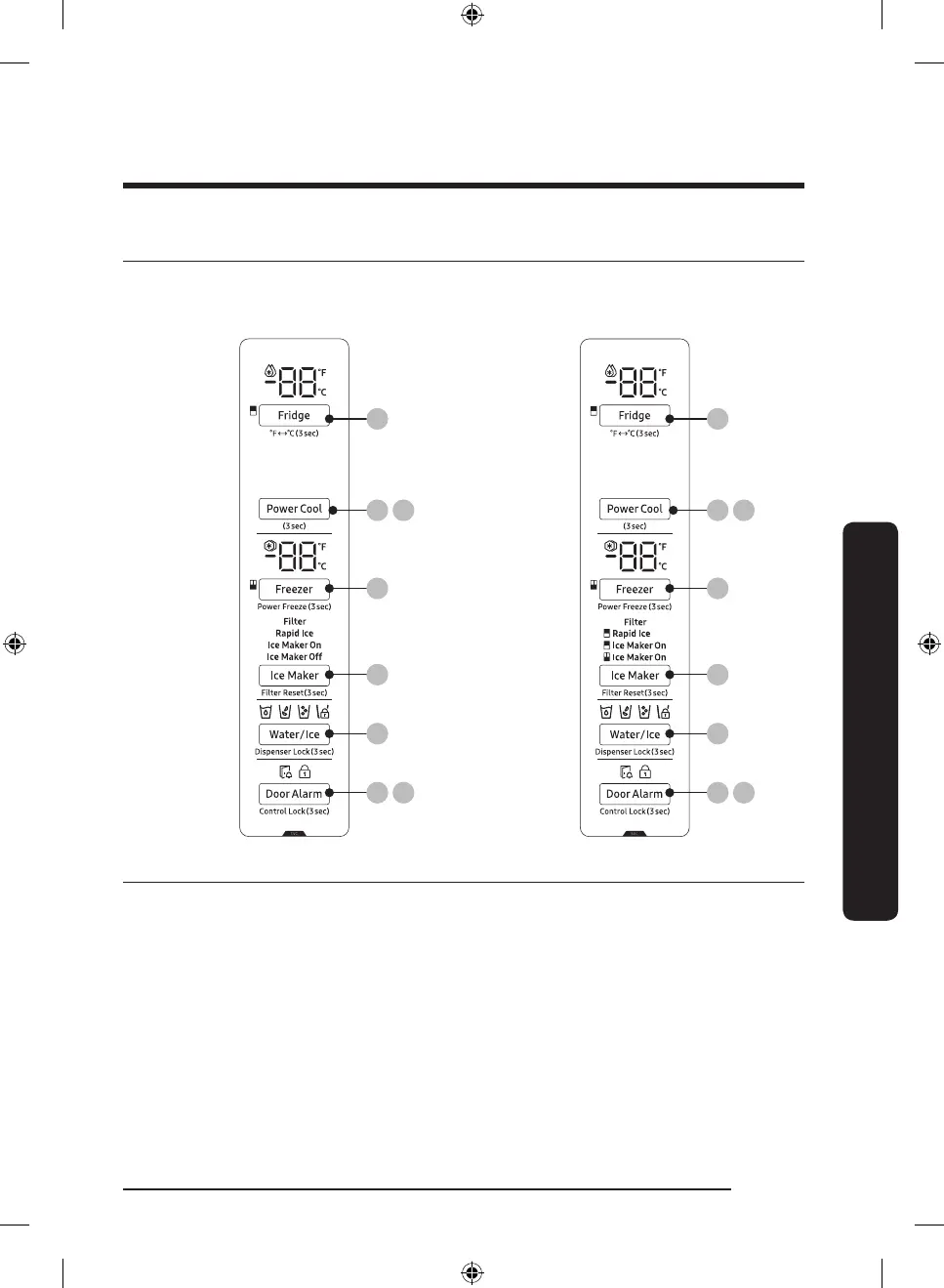 03 Freezer / Power Freeze 04 Ice Maker / Filter Reset *