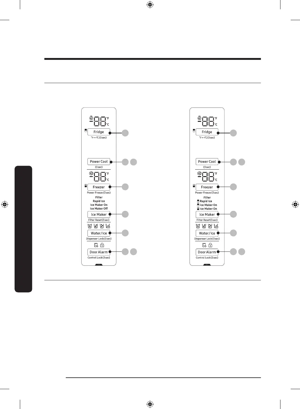 01 Fridge (Refrigerador) / °F °C 02 Power Cool (Refrigeración rápida)