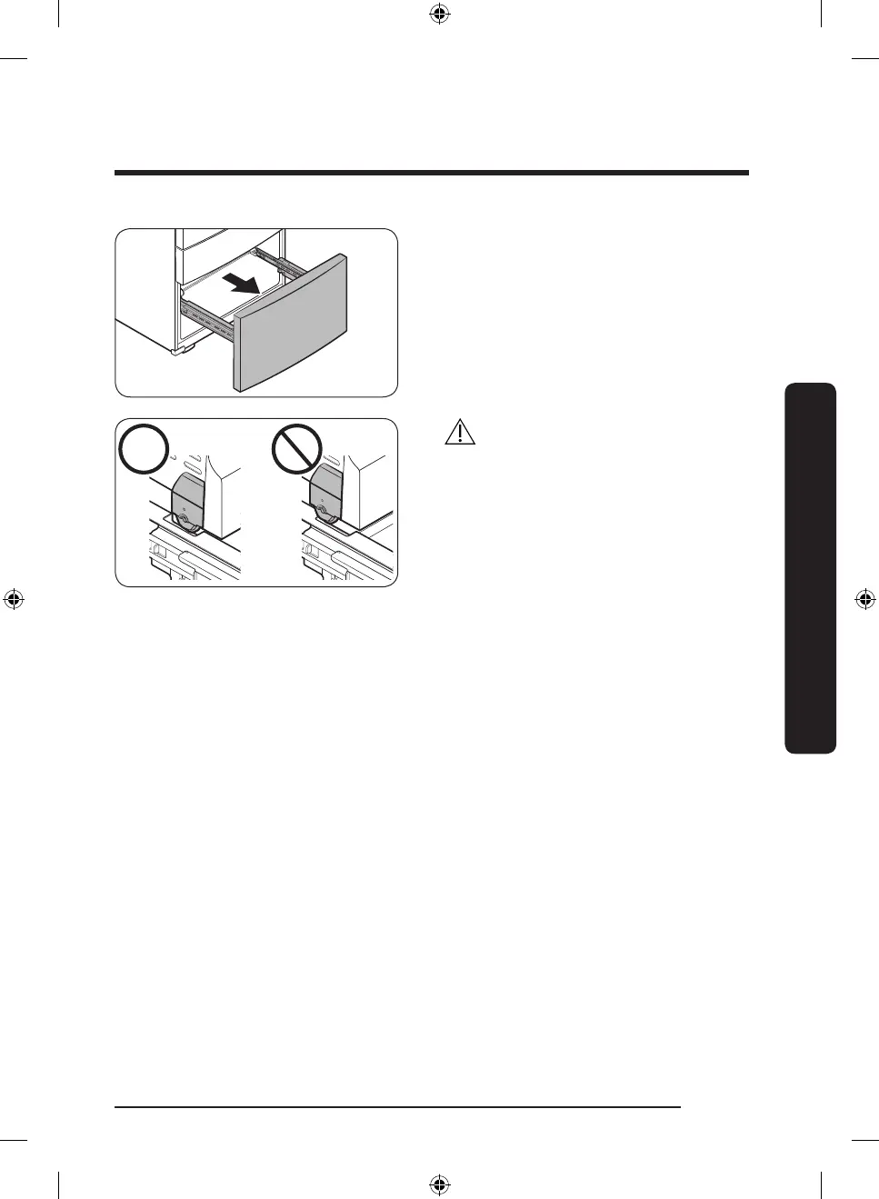 Once the refrigerator is in or near it's nal location, re-attach the freezer drawer by