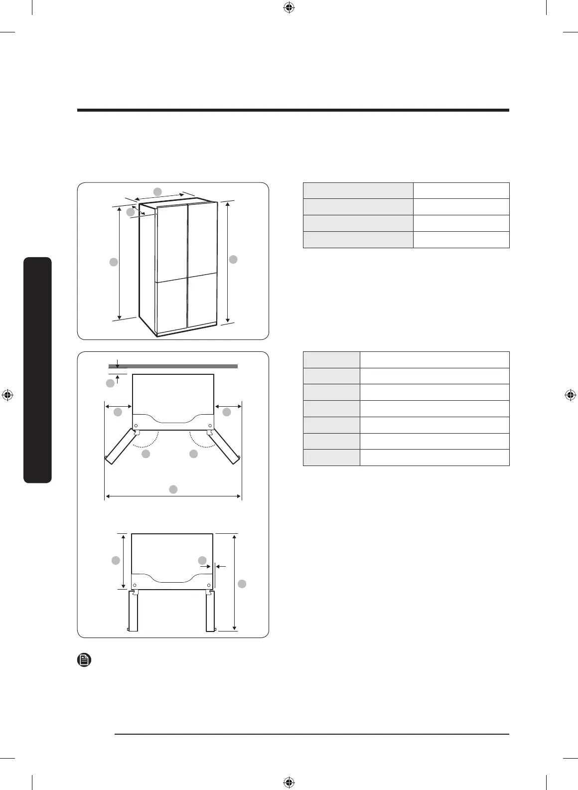 Consulte las imágenes y las tablas siguientes para las necesidades en cuanto a espacio de la instalación.