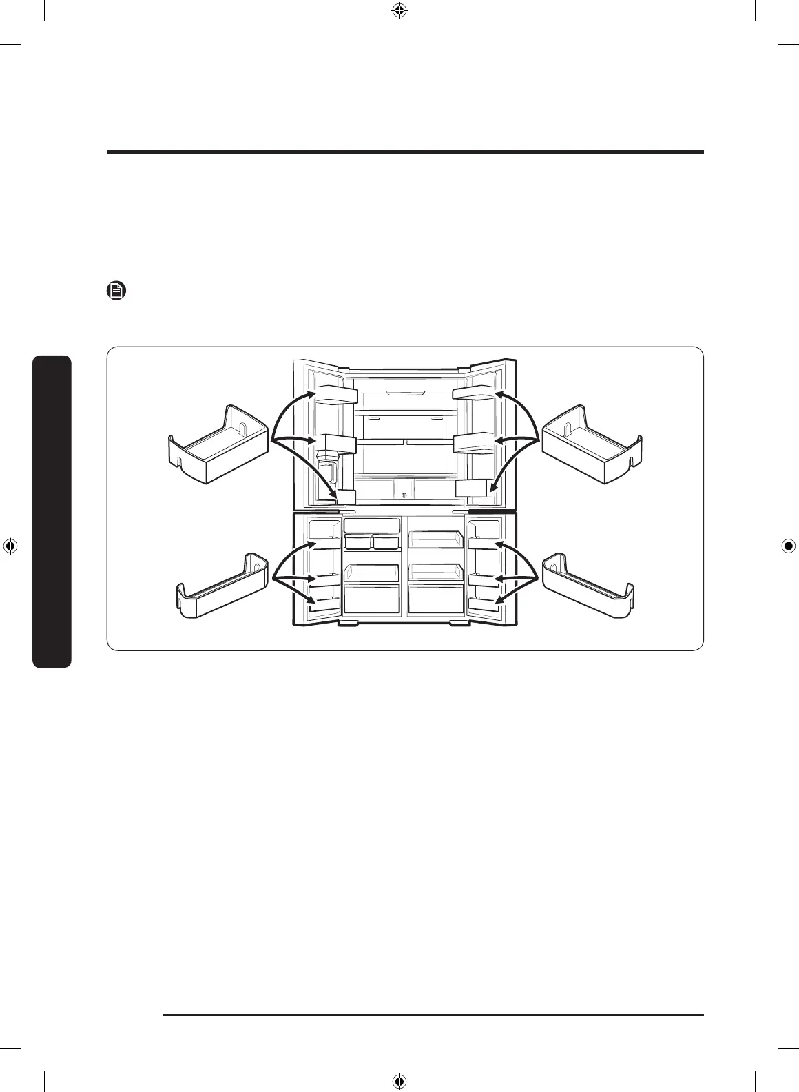 Your refrigerator ships with door bins of different types and sizes. If the door bins for