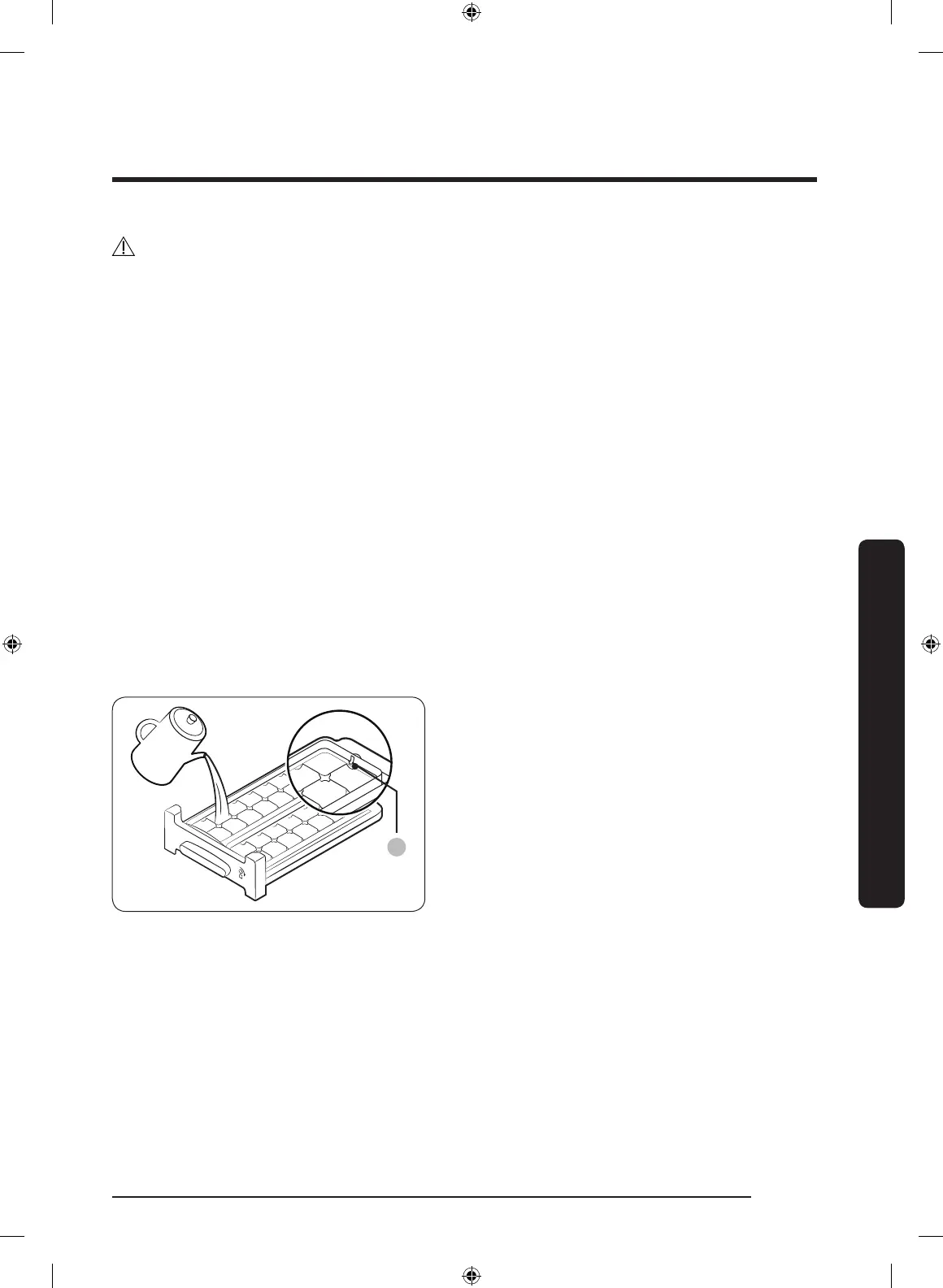 • Do not put food in the ice bucket. The frozen food may damage the ice maker,