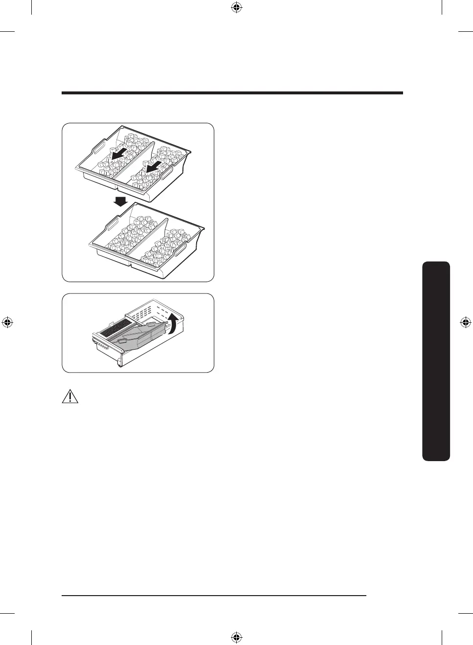 • Do not put food in the ice bucket. The frozen food may damage the ice maker, especially
