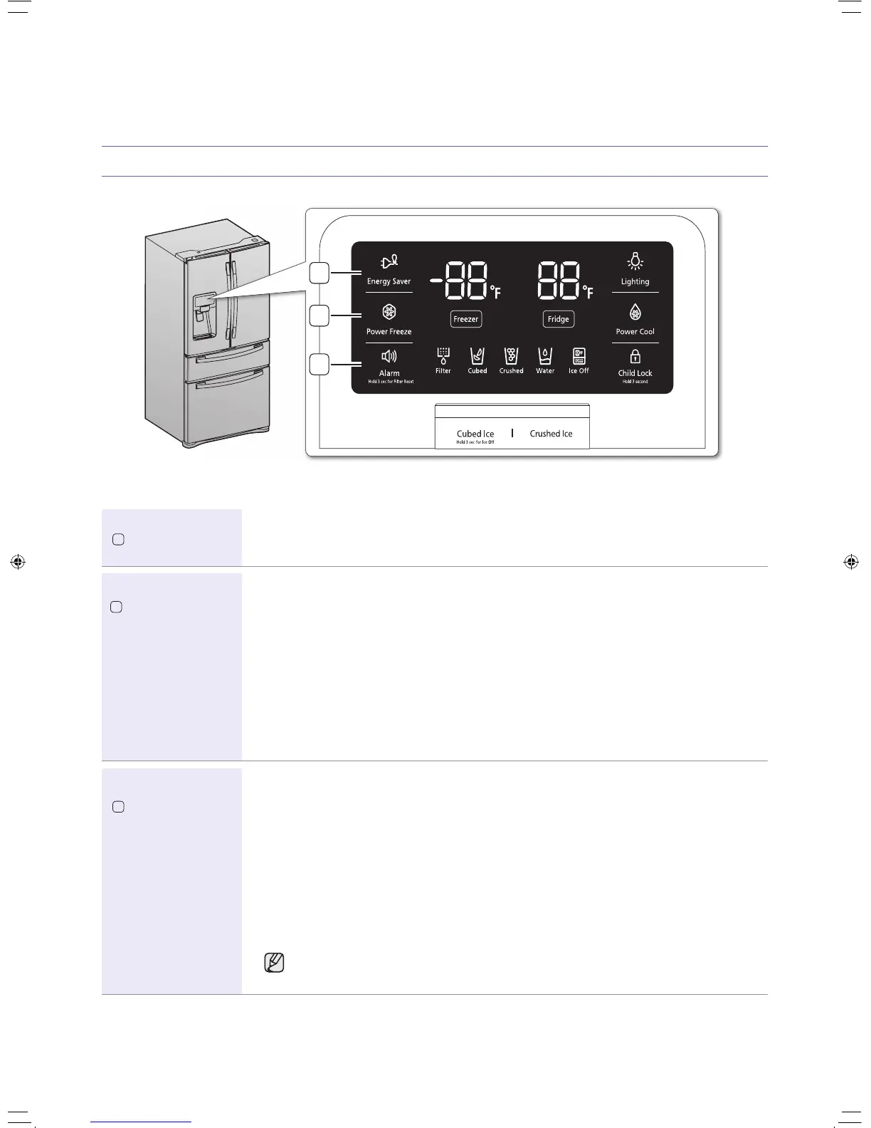 The Energy Saver function is automatically set to “ON” when power is supplied to the refrigerator.