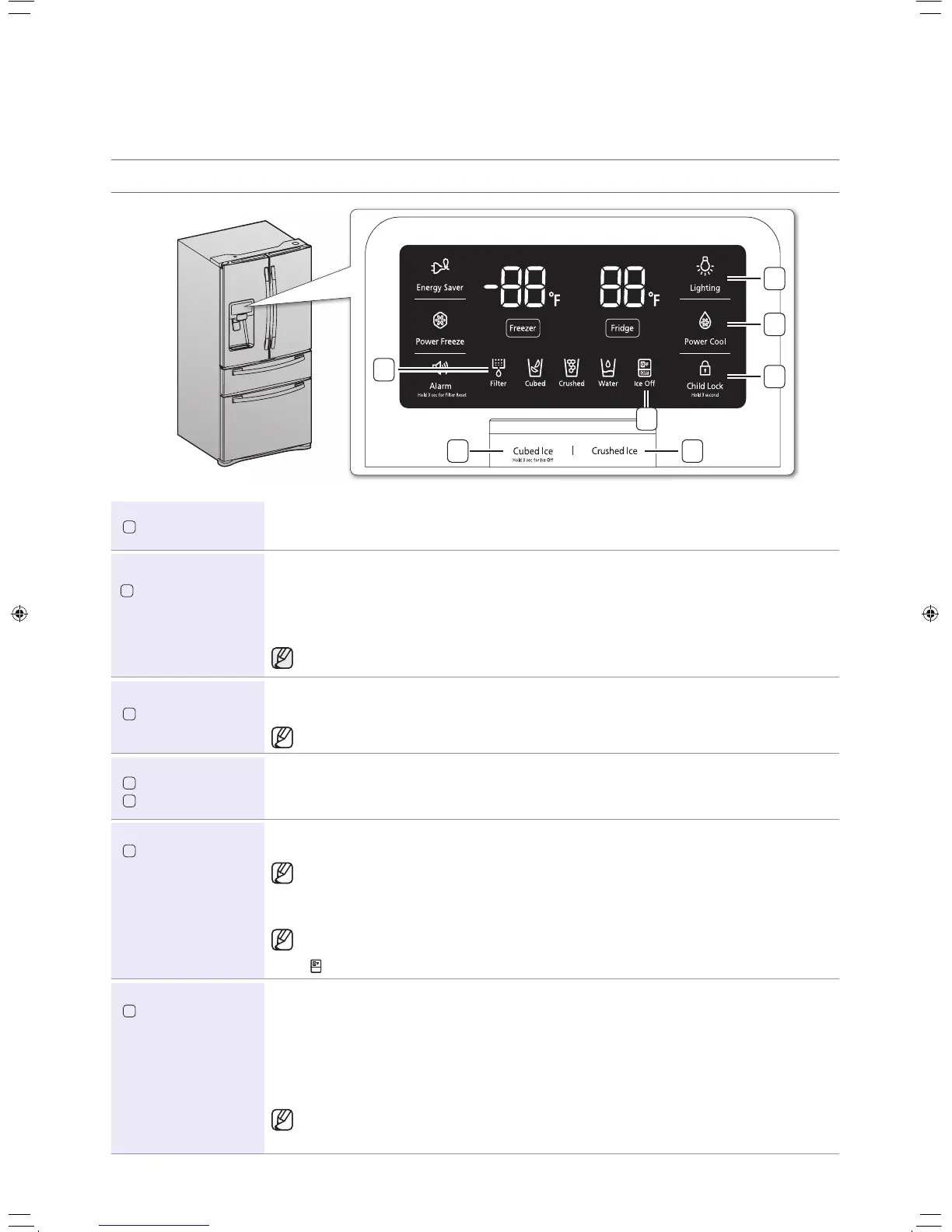 If you don’t need ice, turn the function off to save on water and energy consumption (See Ice Off below).