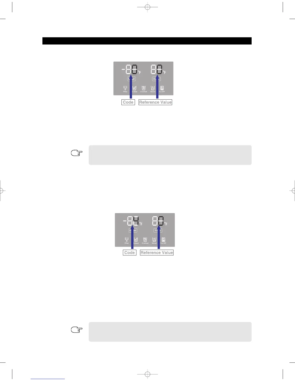 - If fresh food compartment "0" shows only, temperature reference value of freezer compartment will be