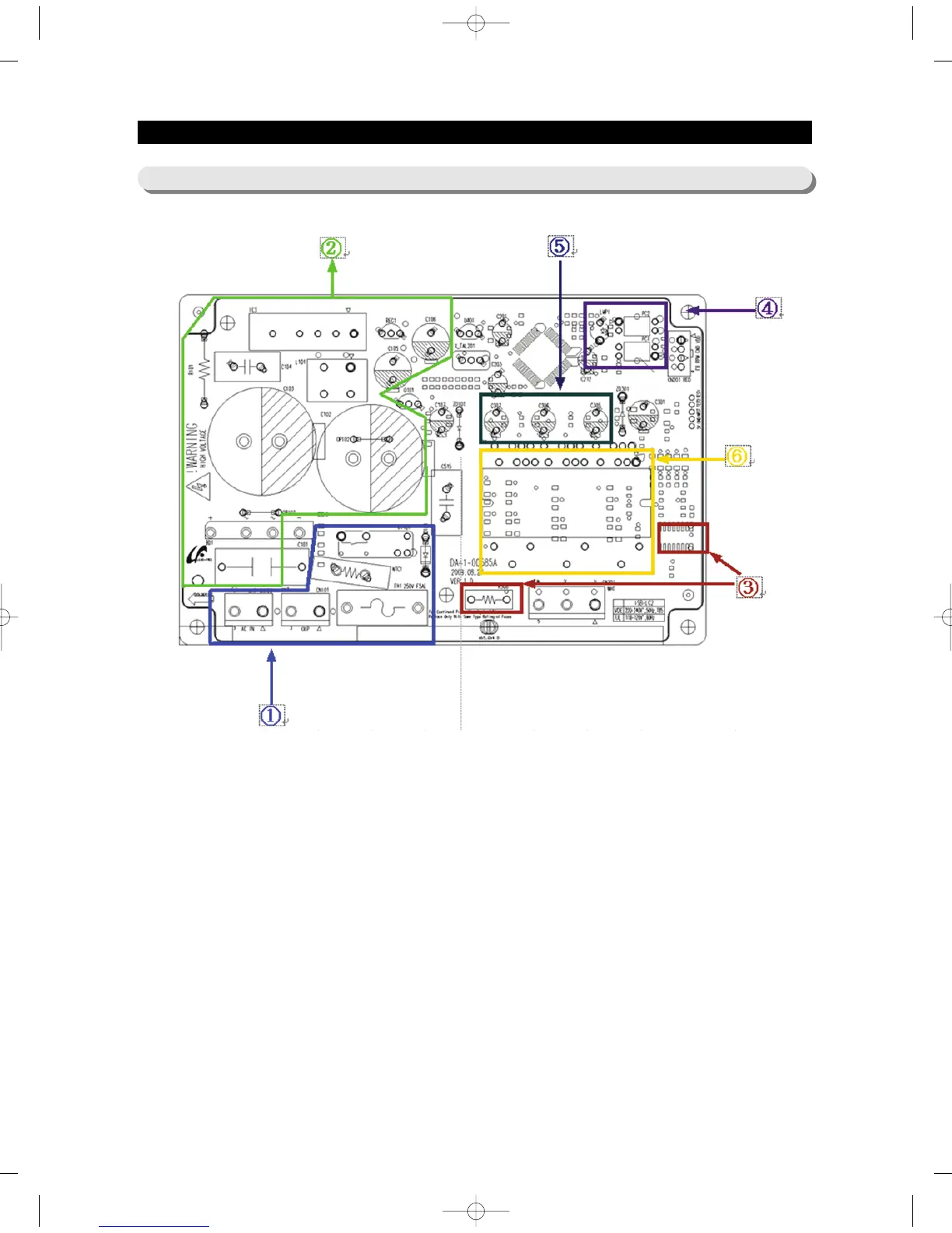 5. COMP operating SIGNAL area : It receives COMP operating signal from MAIN PCB and conduct it.
