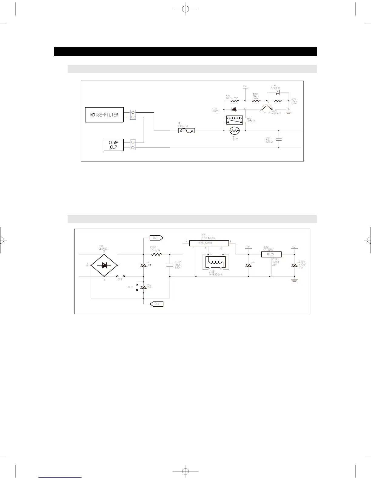 2) The Fuse 1 is designed as 5A to prevent over current applied to Compressor, and Fuse 2 is designed as 1A to