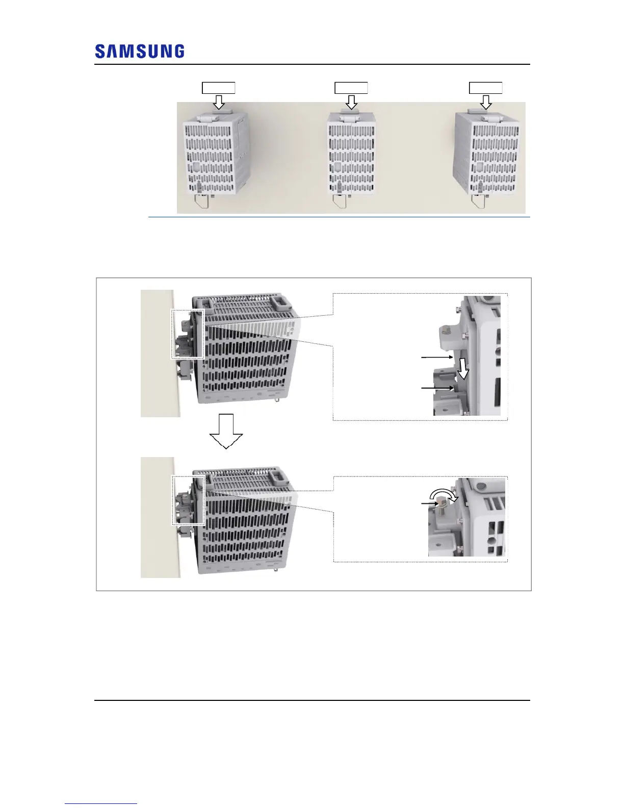 Hang the unit bracket hook of RRH-0 side on the groove of the mounting